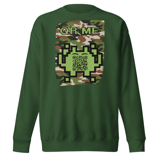 Green Camo Alien QR Code Sweatshirt – Stealth Style for Gamers