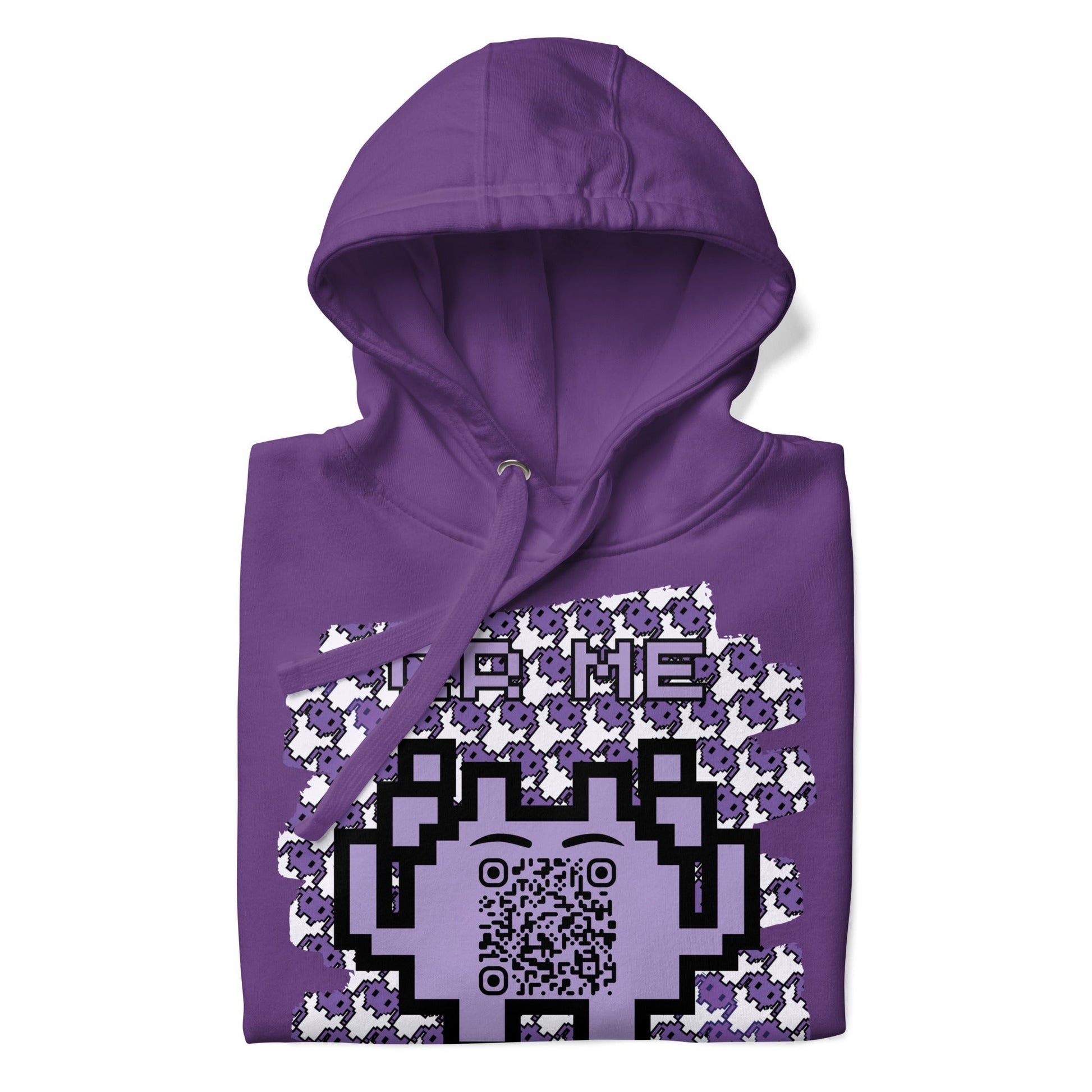 Featuring an awesome alien emoji design, this hoodie is perfect for gamers and nerds to share their playlists, game links, or personal favorites by scanning a personalized QR code.