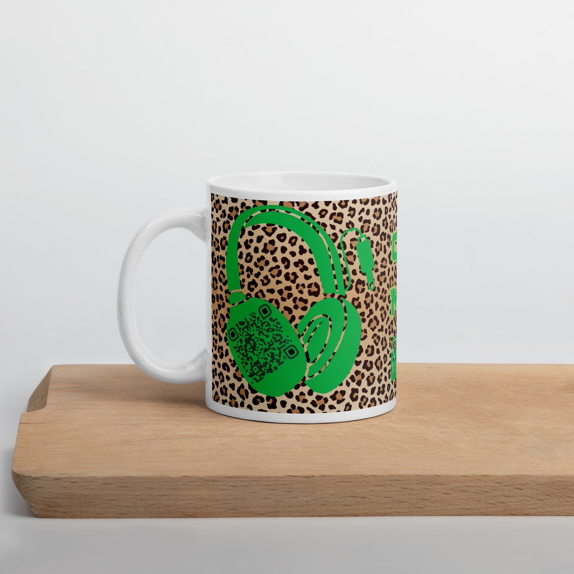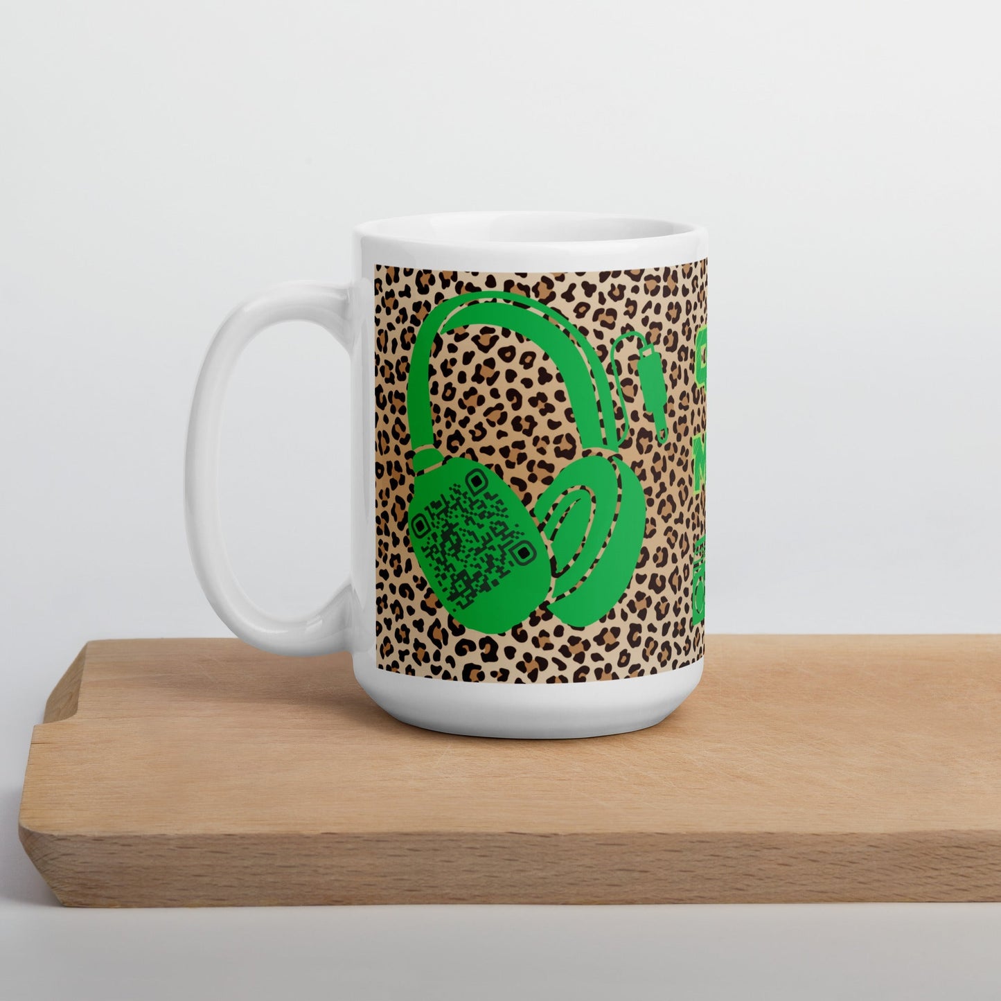 Custom QR Code Mug with Quirky Leopard Print β Share Your Playlist
