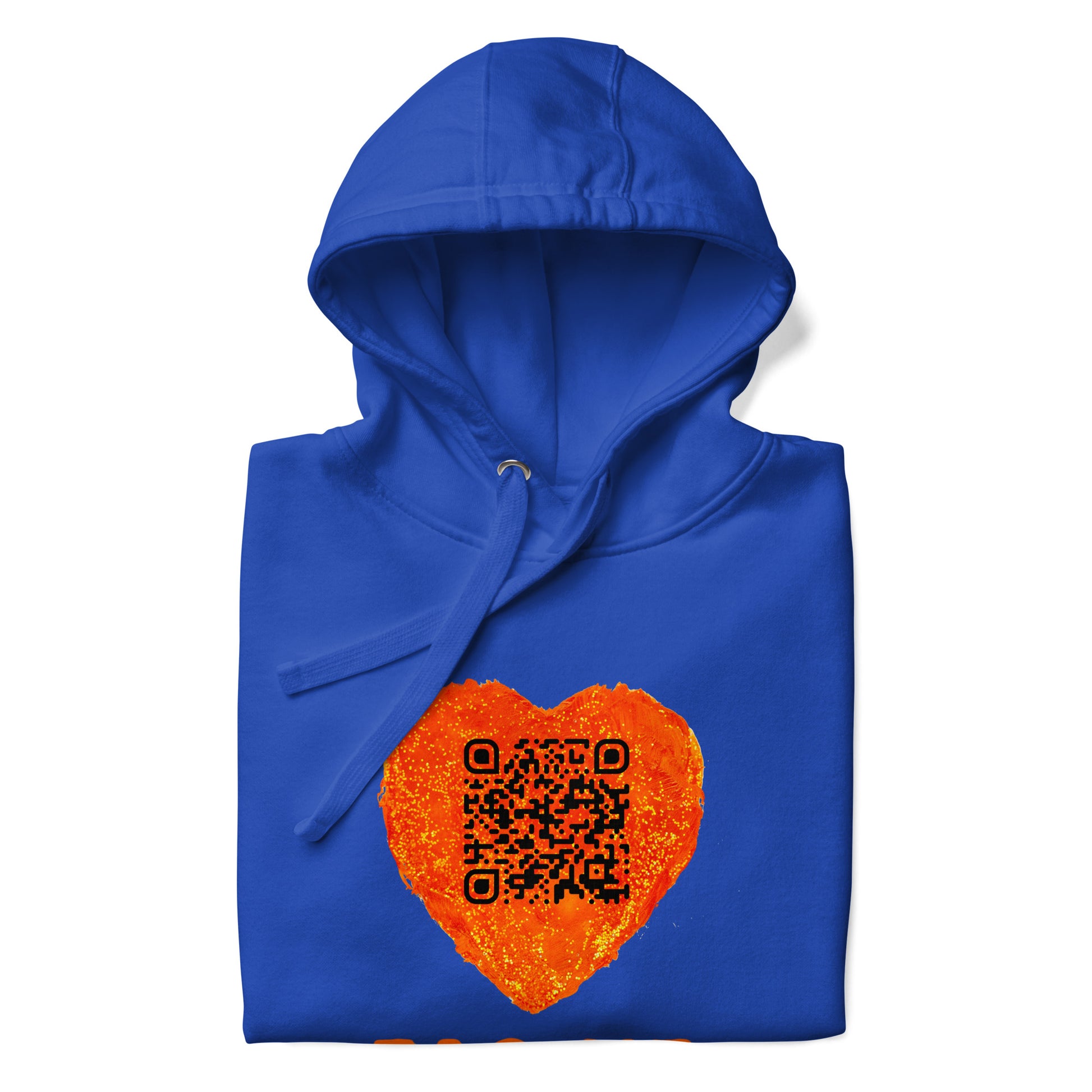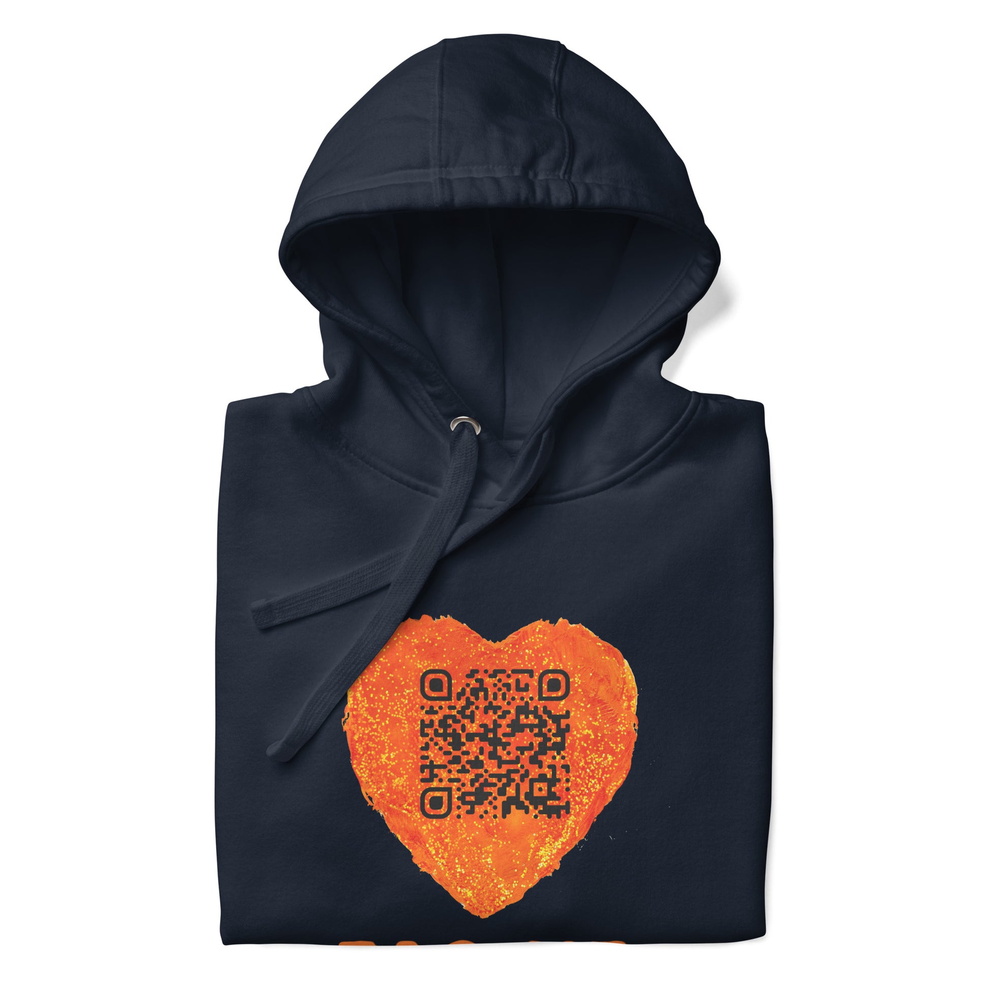Featuring a vibrant orange heart design, these hoodies let you personalise your style with a custom QR code that links to anything – your socials, Spotify playlists, dating profile, or even a heartfelt message.