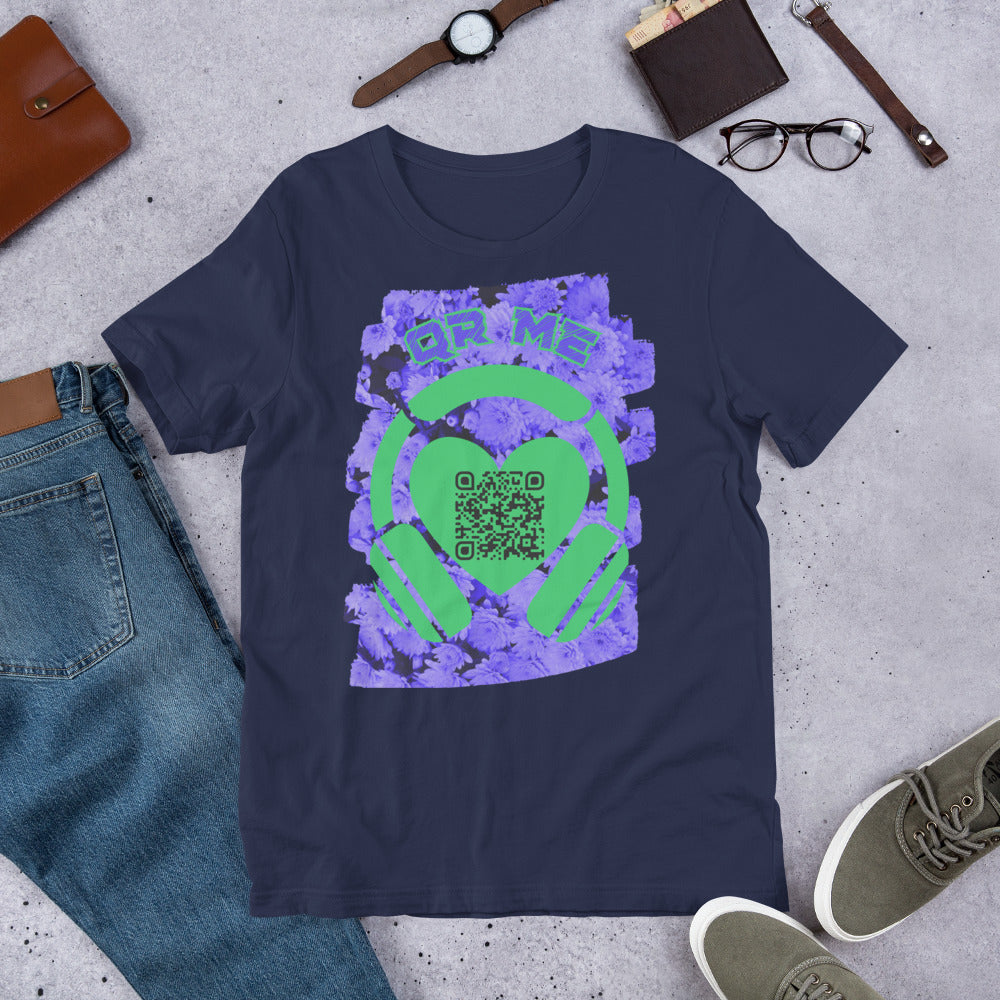 This tee features a scannable QR code linking to your Spotify playlists, perfect for sharing your fruits music vibes.