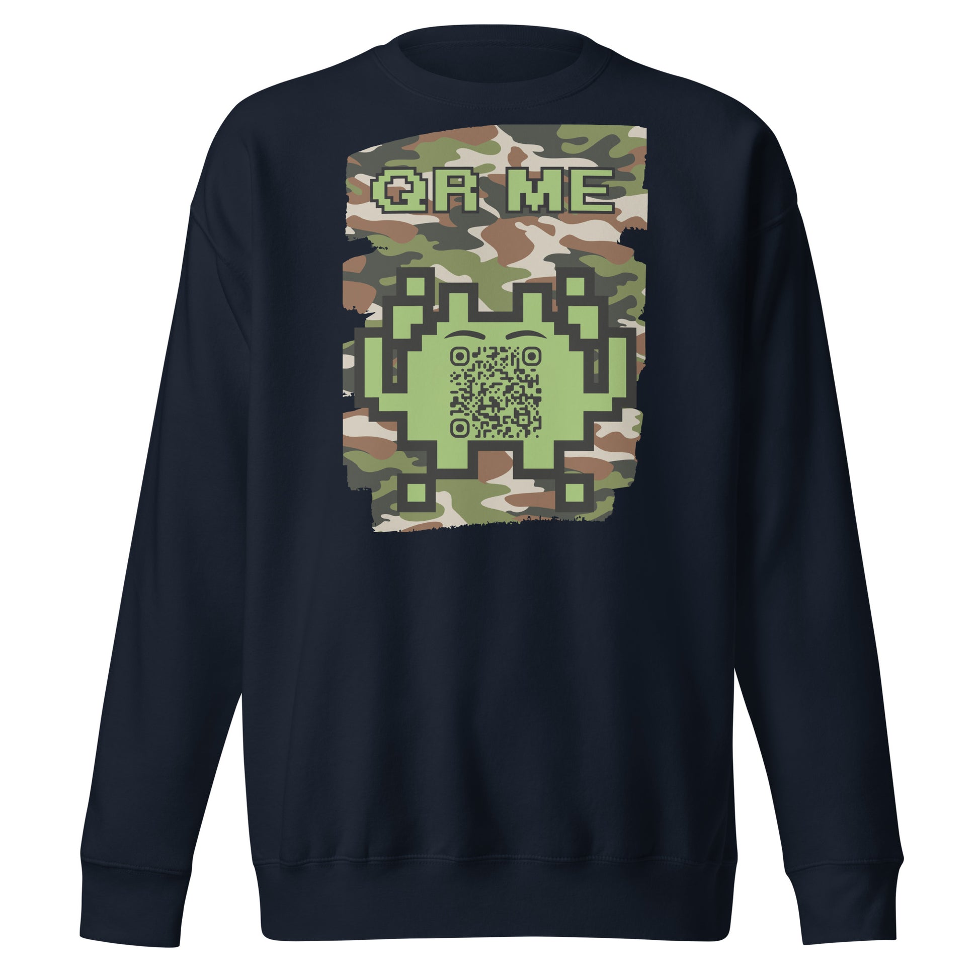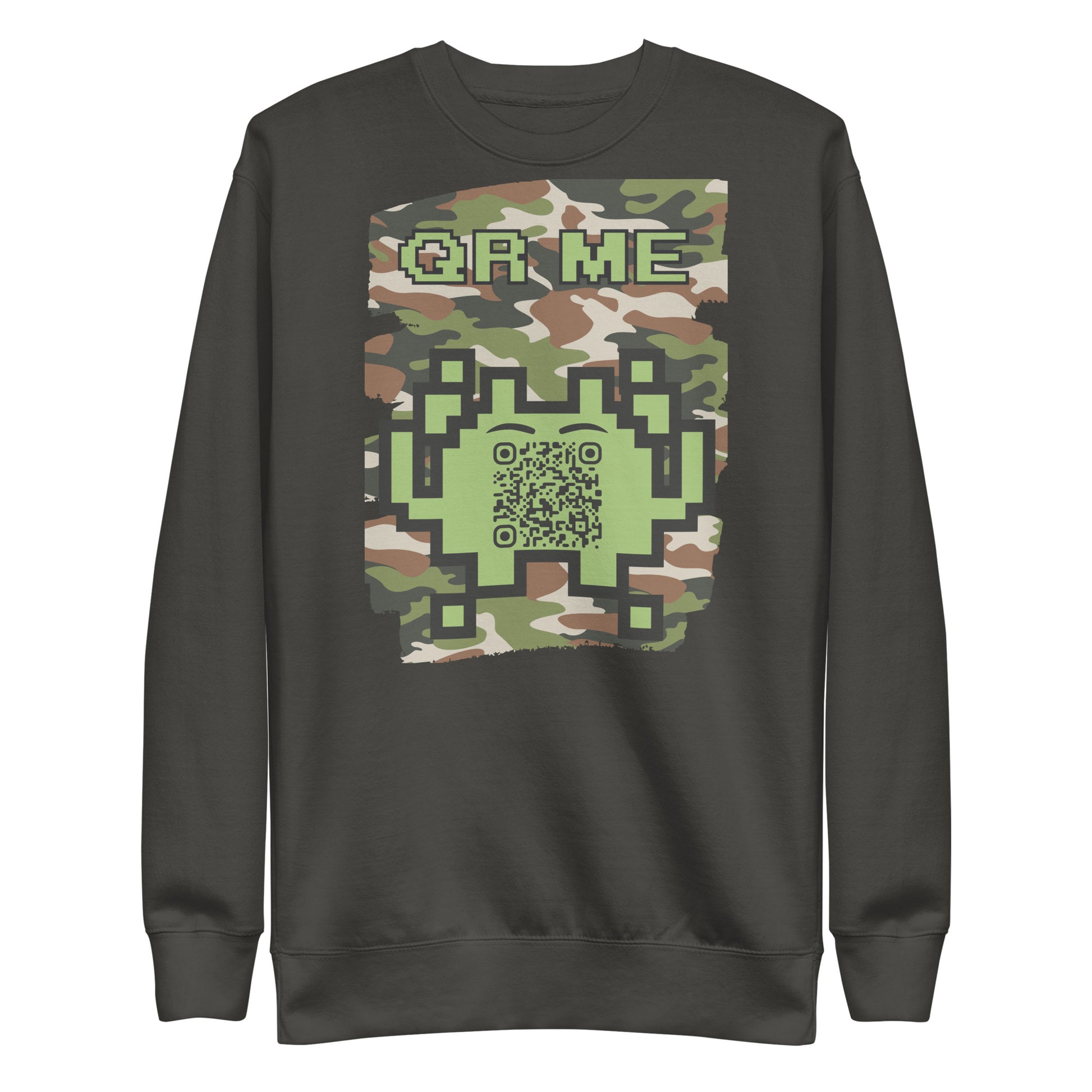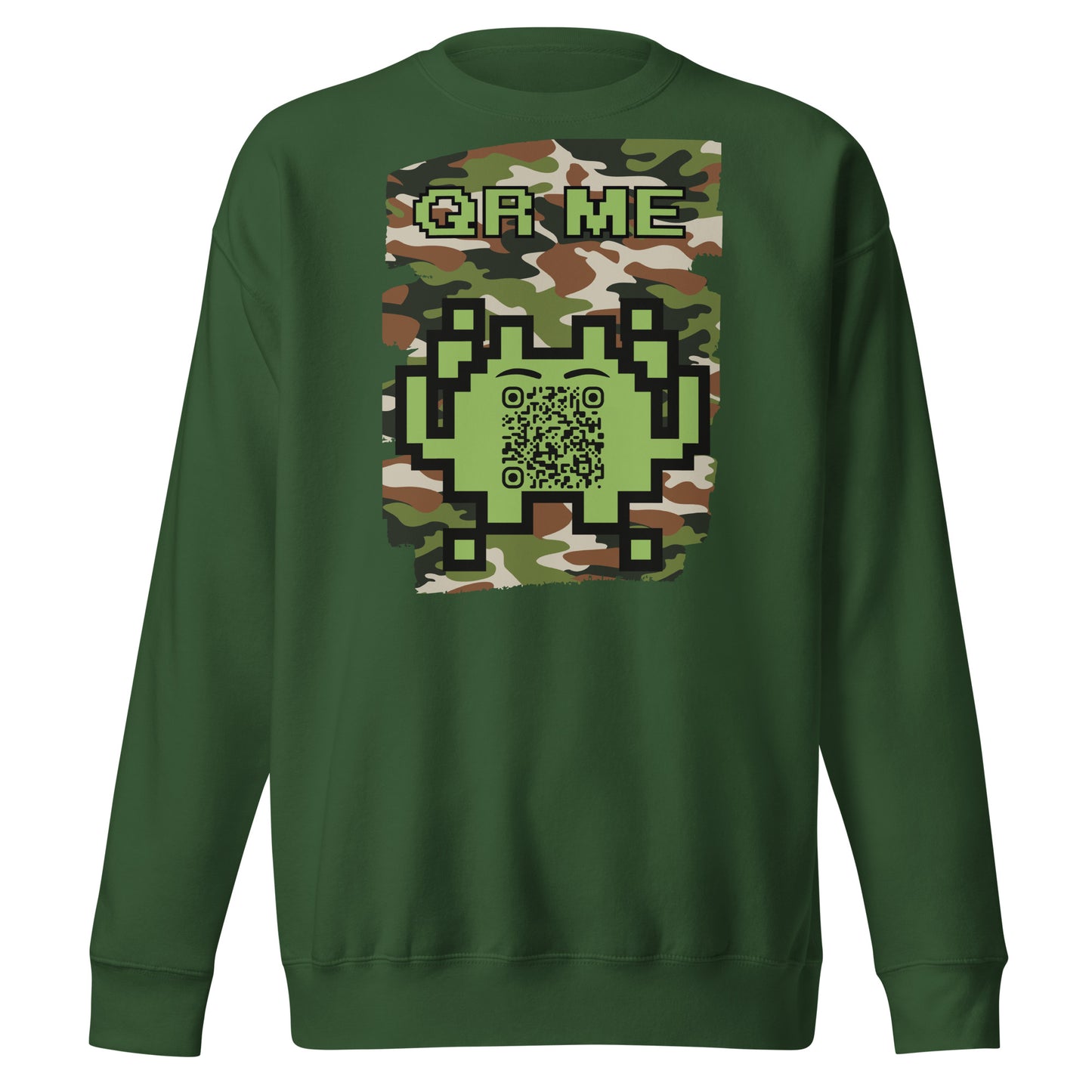 Game on in stealth mode with our Green Camo Alien QR Code Sweatshirt! π½