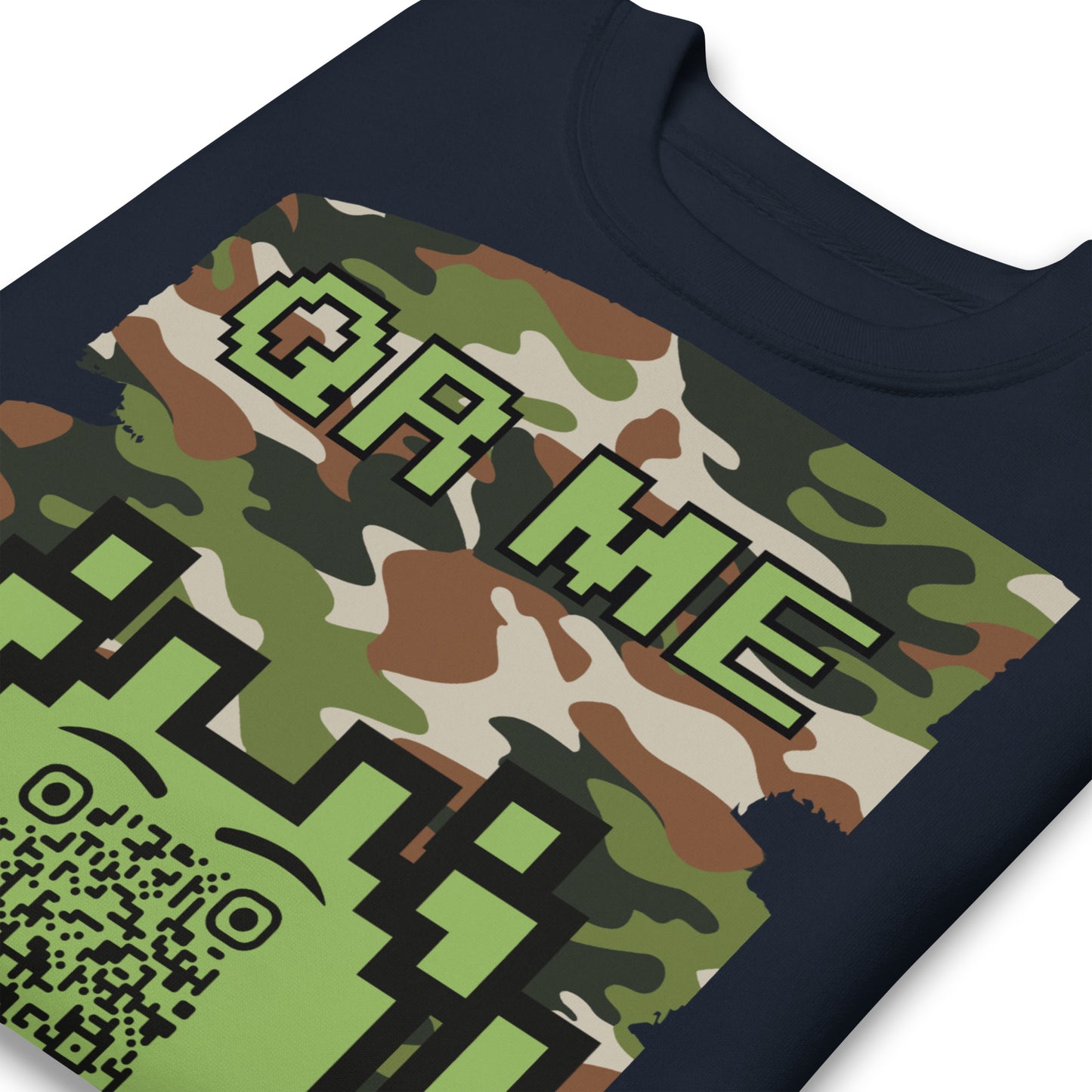 Green Camo Alien QR Code Sweatshirt β Stealth Style for Gamers
