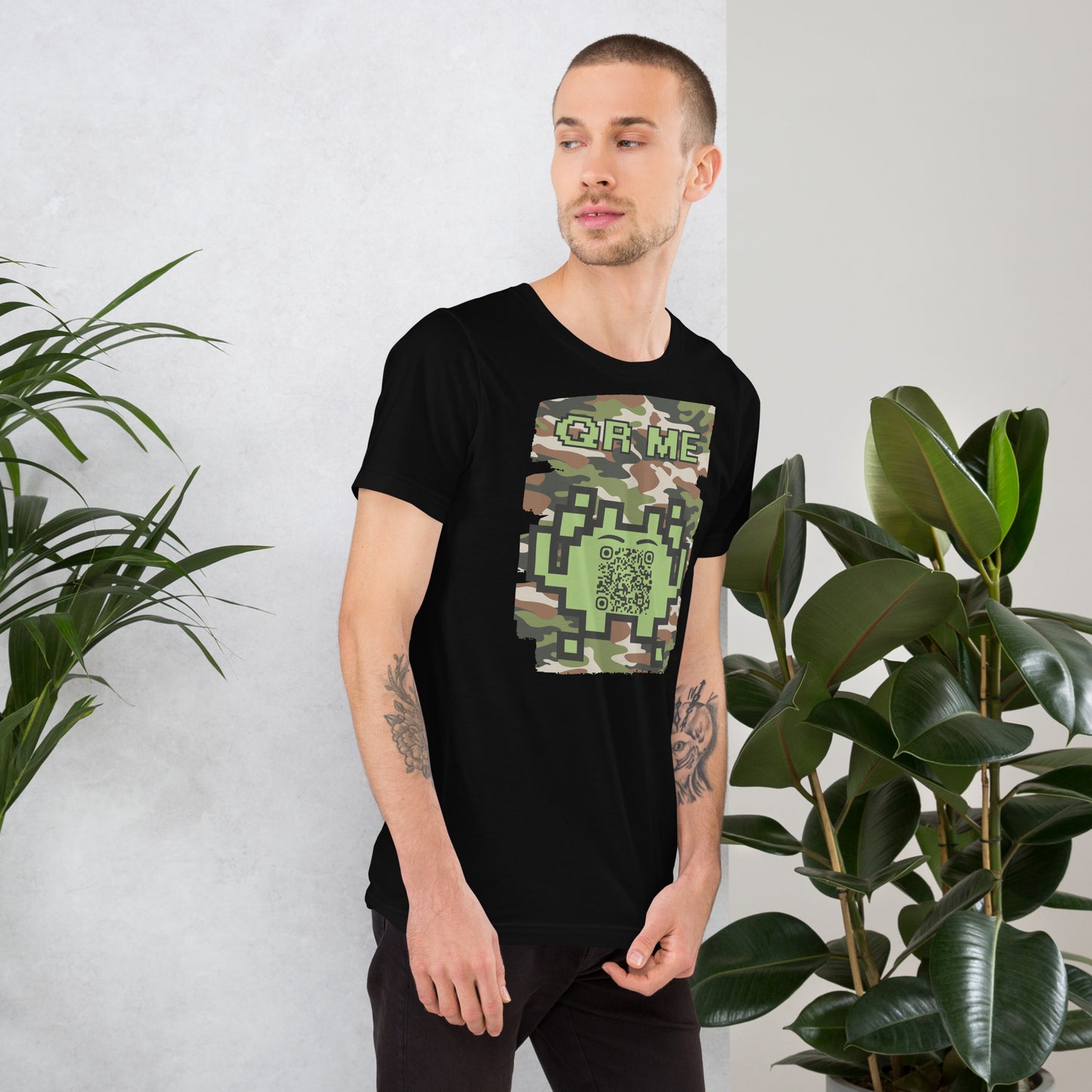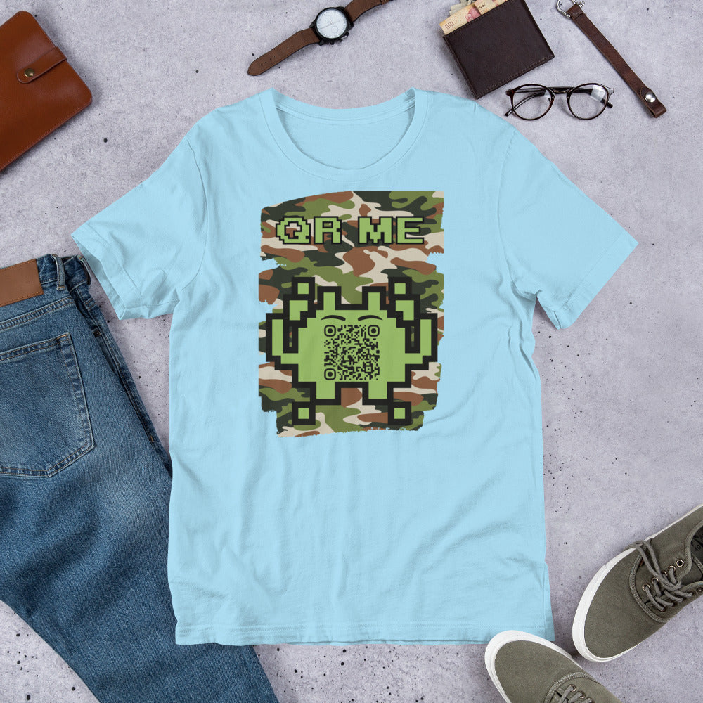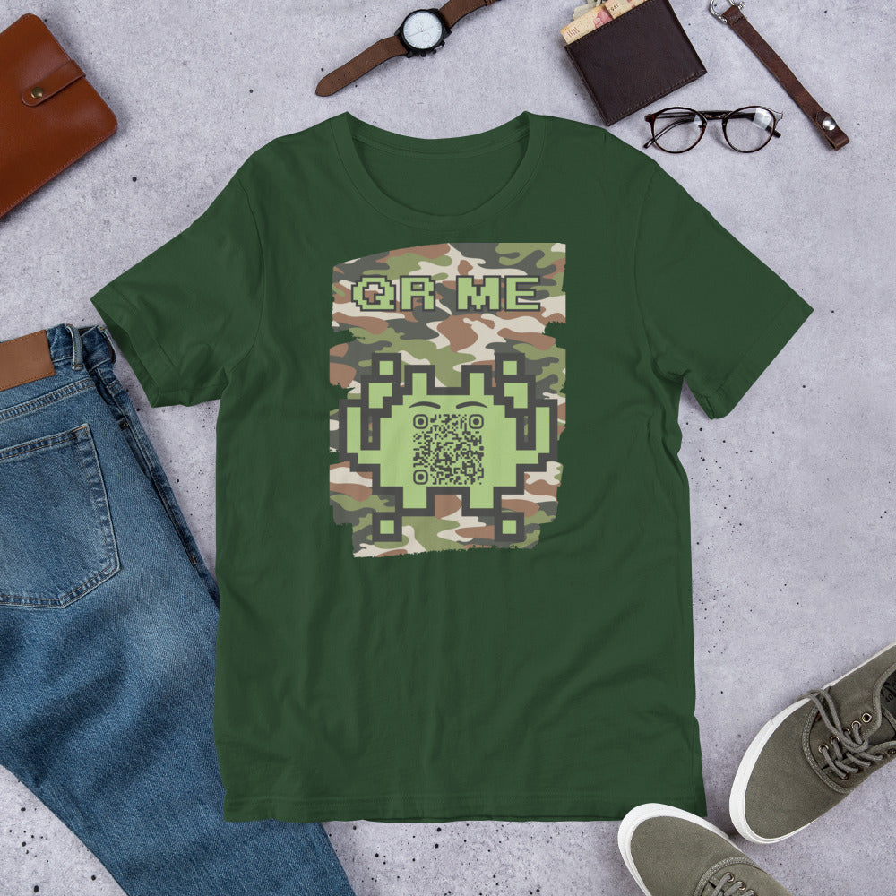 Stay cool with our Green Camo Alien QR Code T-Shirt! π½