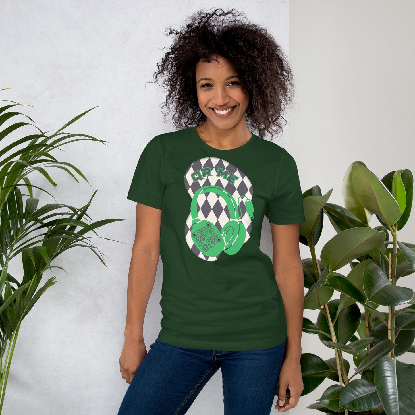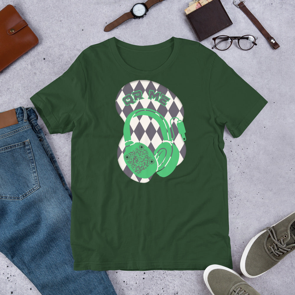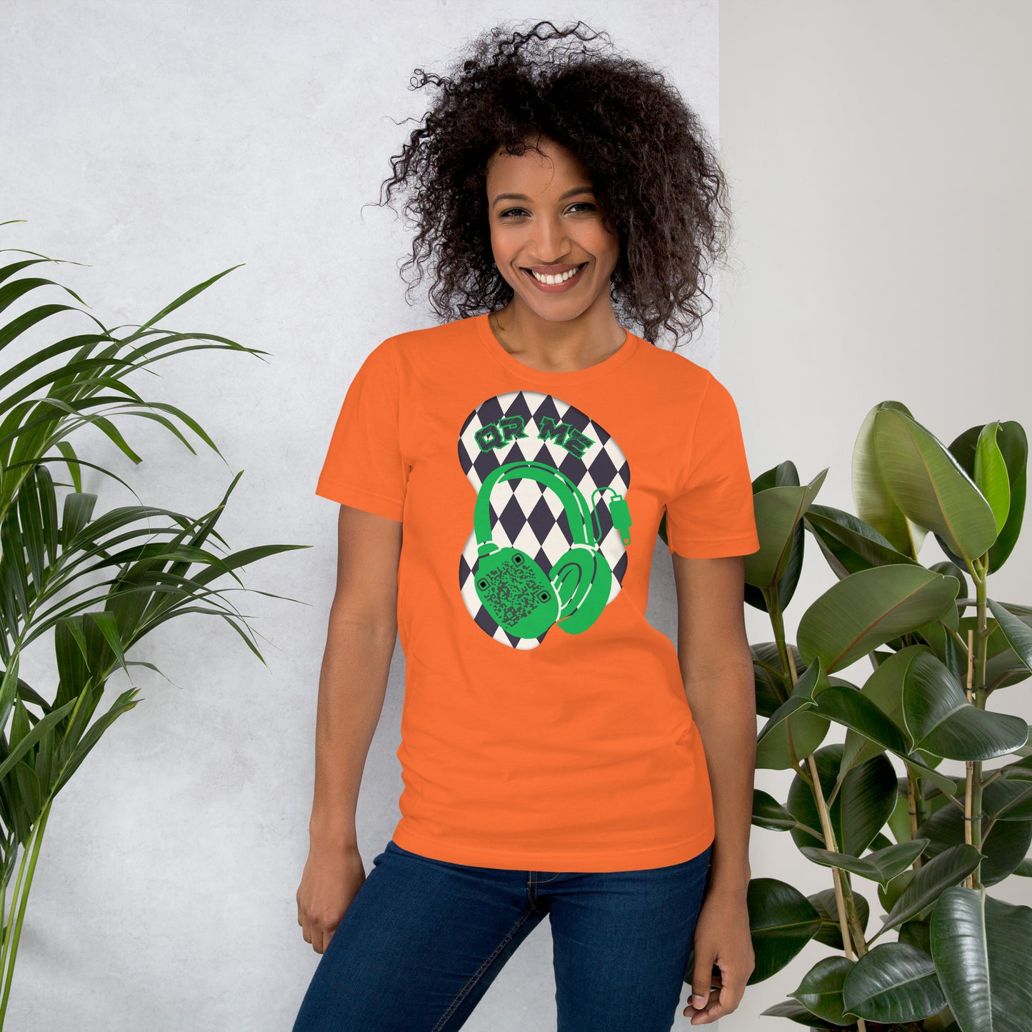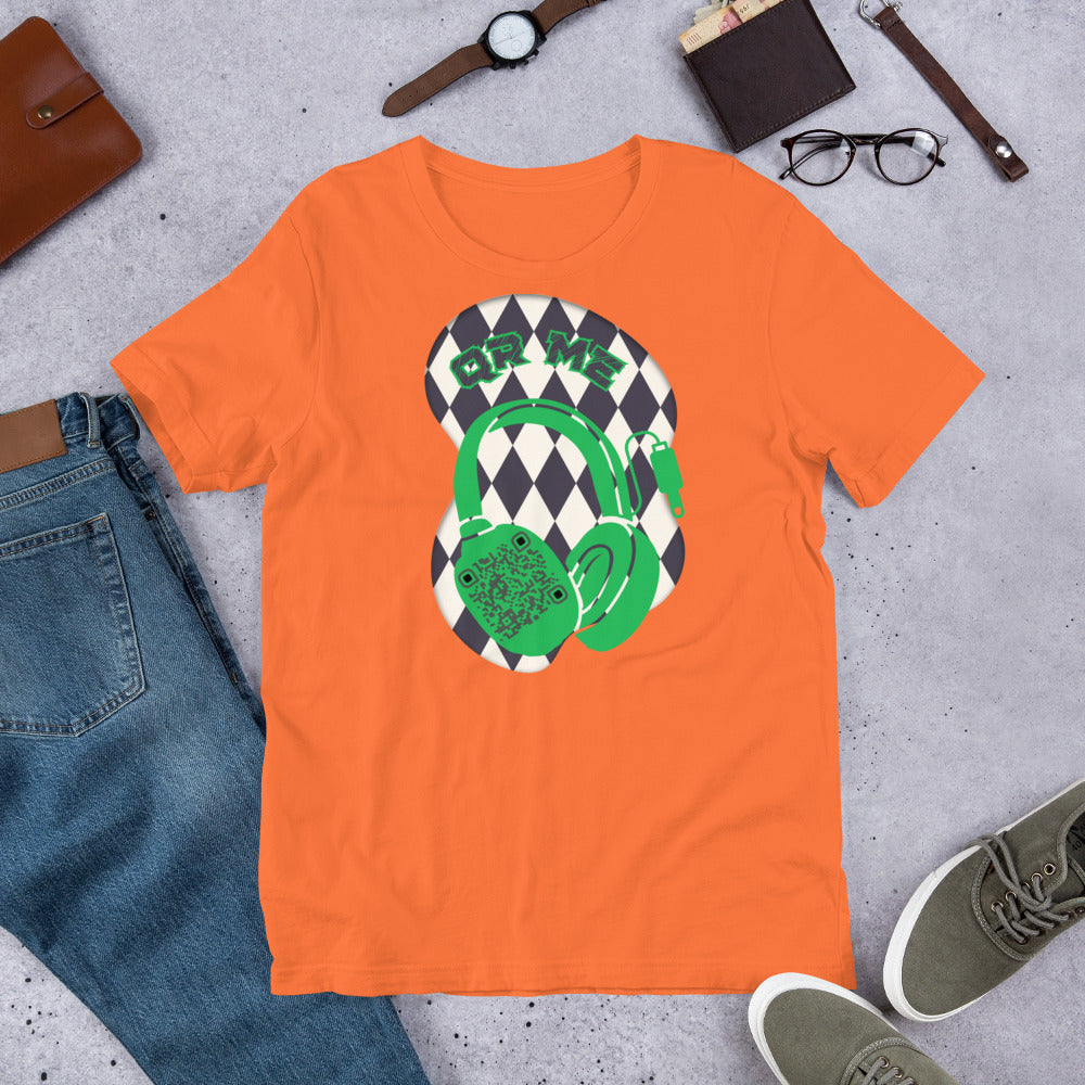 Harlequin QR Code T-Shirt – Share Your Tunes with Flair