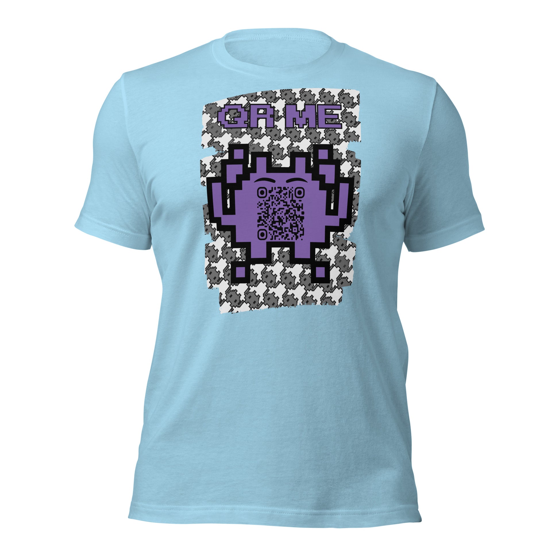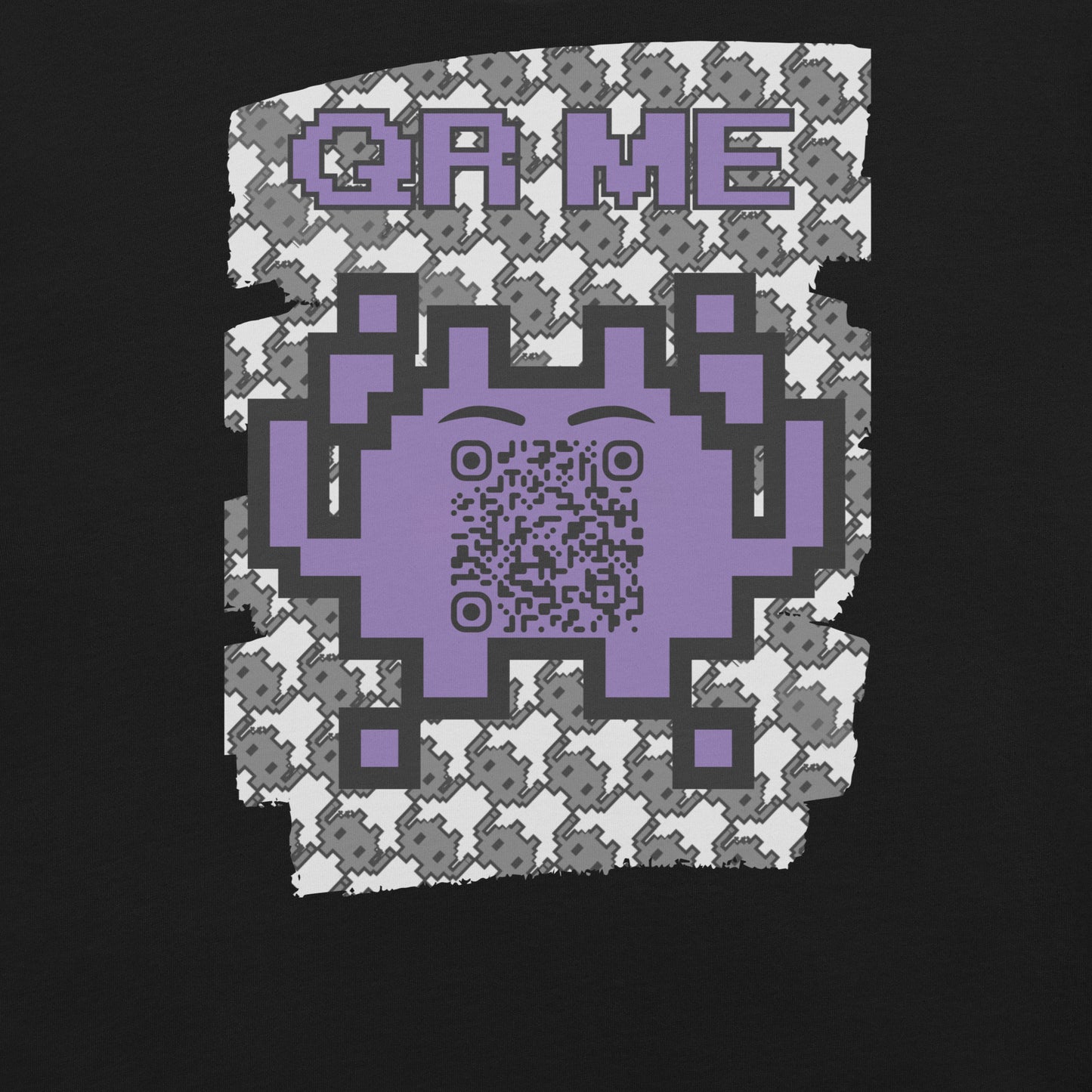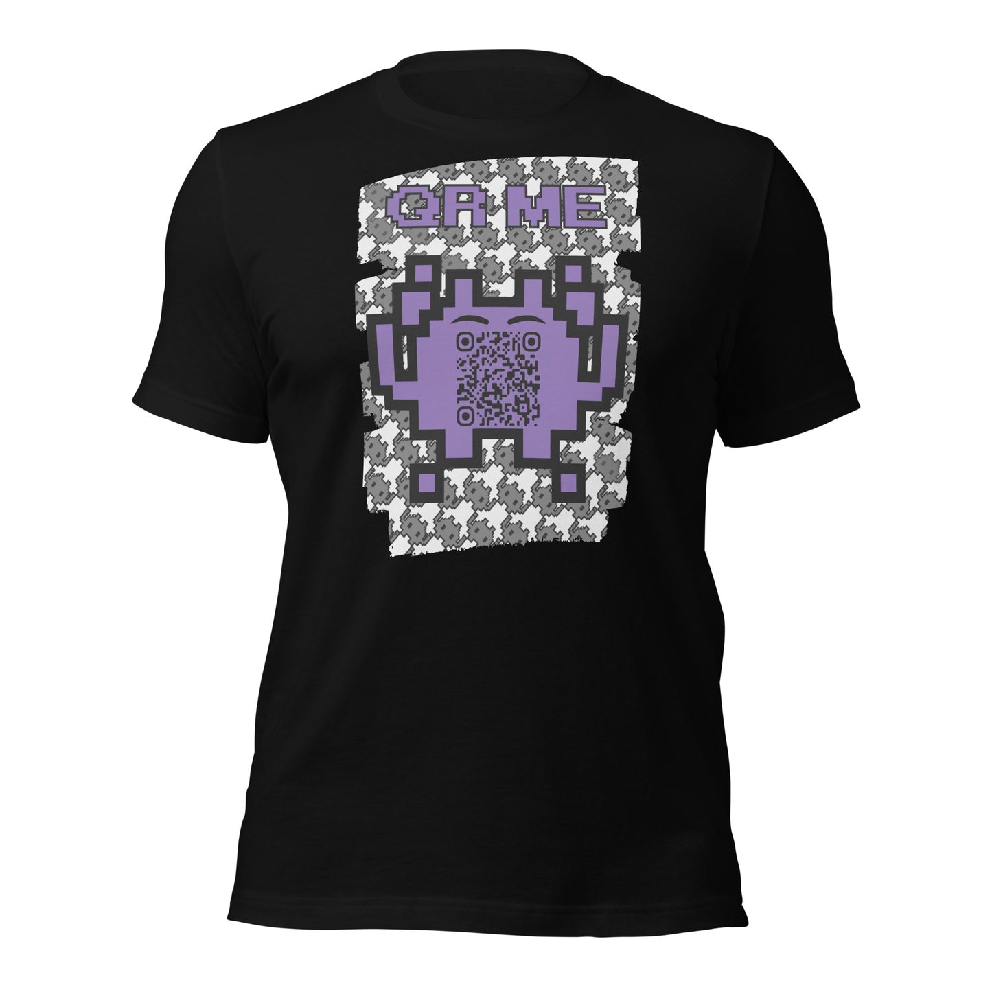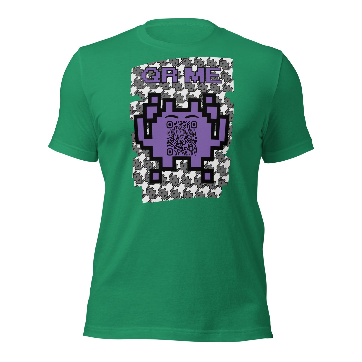 Featuring a sharp alien houndstooth pattern, this t-shirt lets you share your gaming profiles or YouTube channel effortlessly by scanning the personalized QR code.