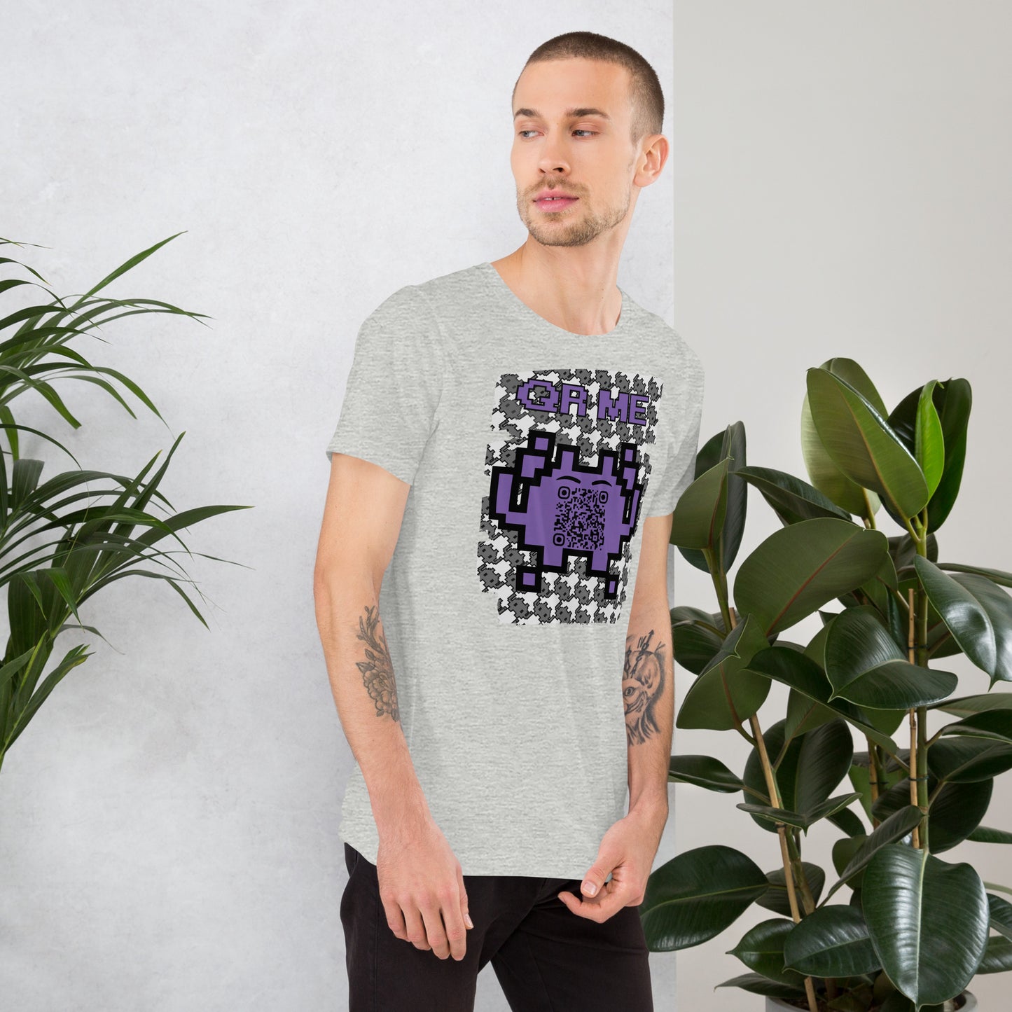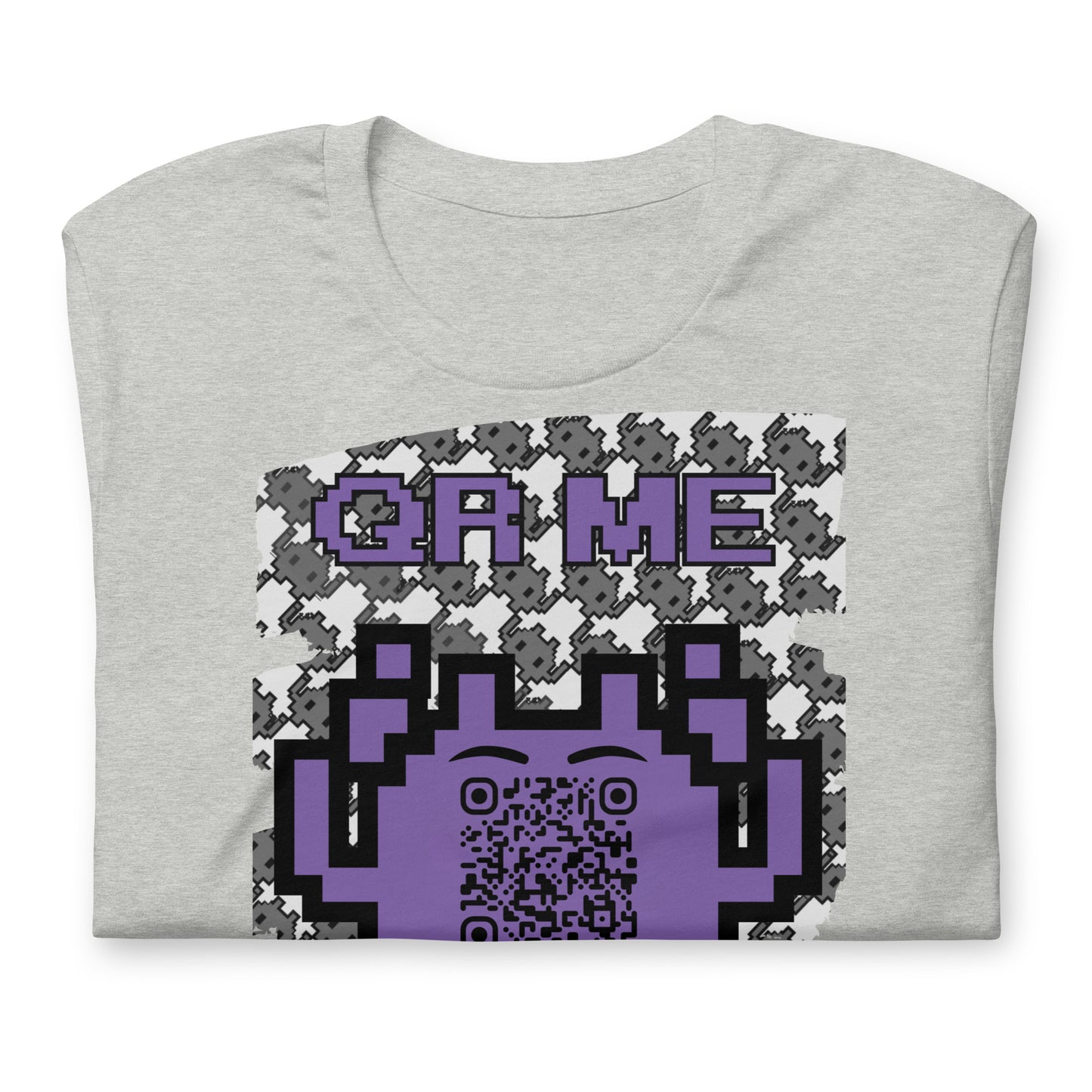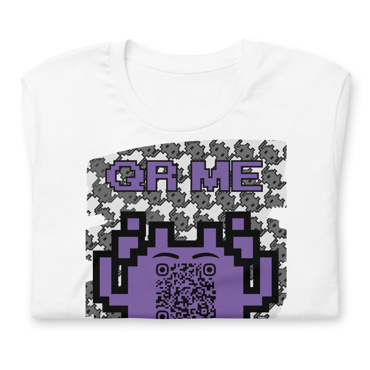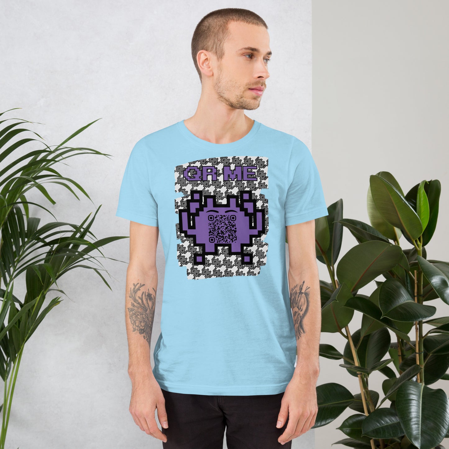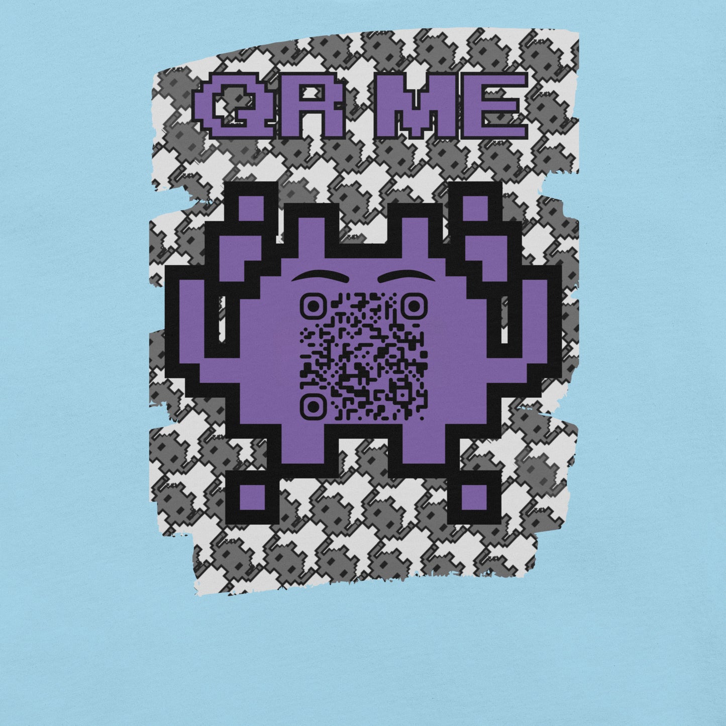 Featuring a sharp alien houndstooth pattern, this t-shirt lets you share your gaming profiles or YouTube channel effortlessly by scanning the personalized QR code.