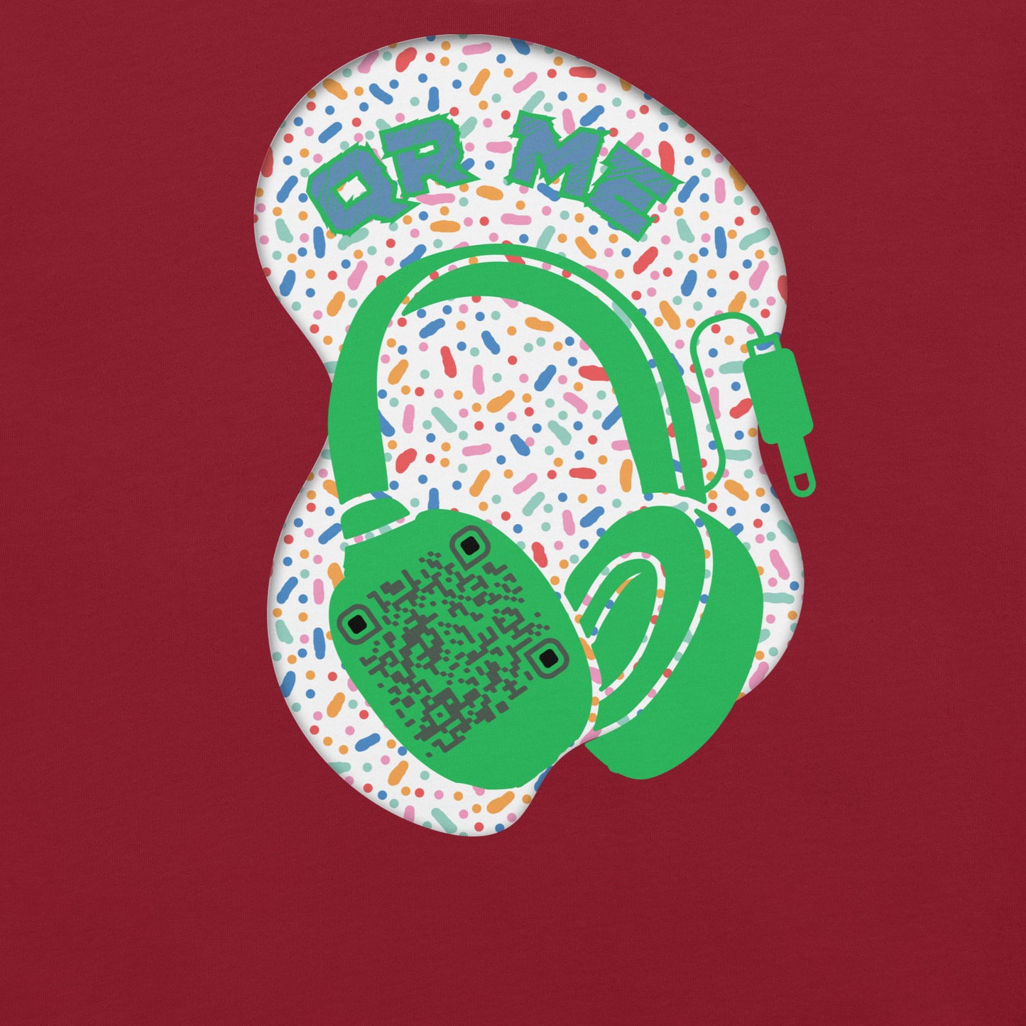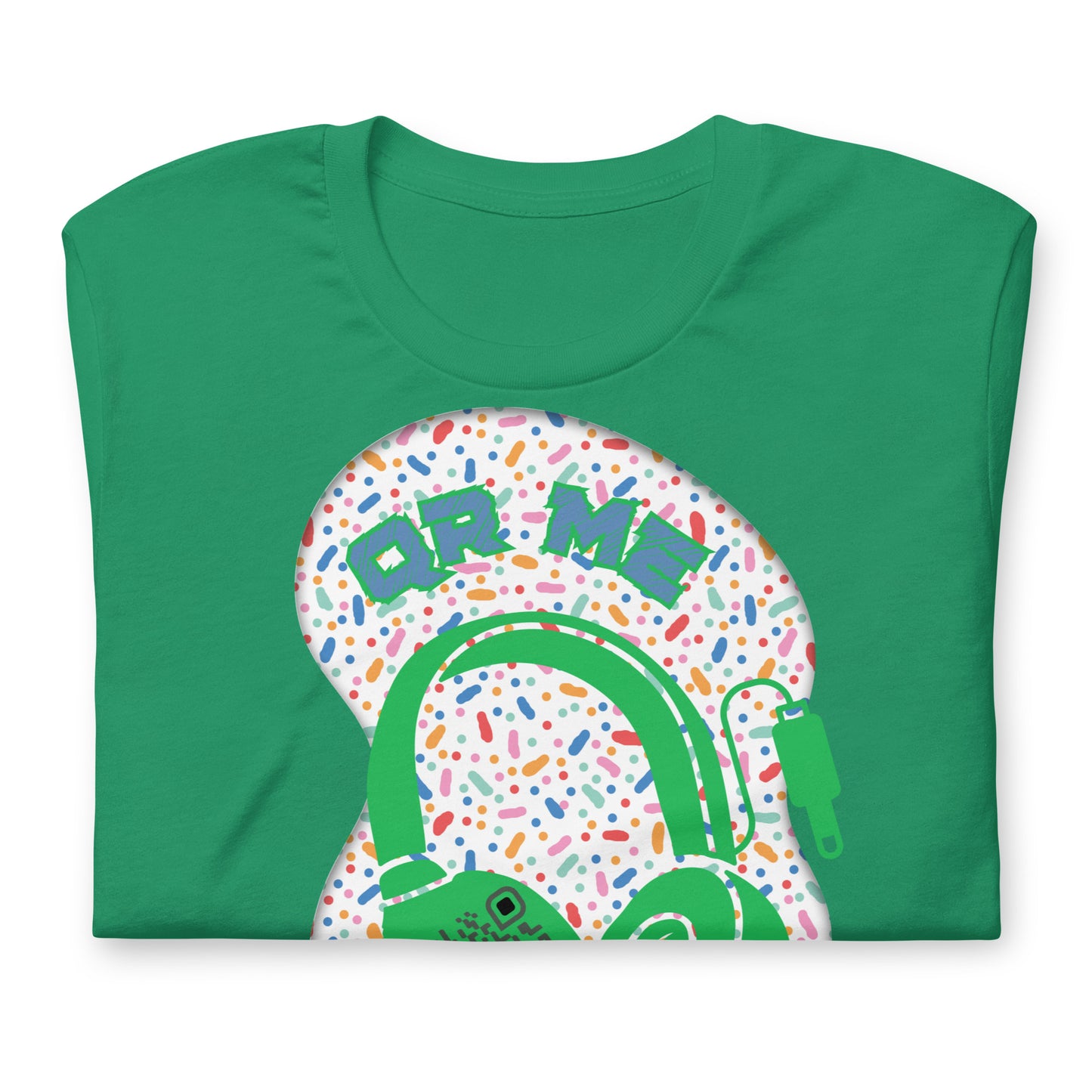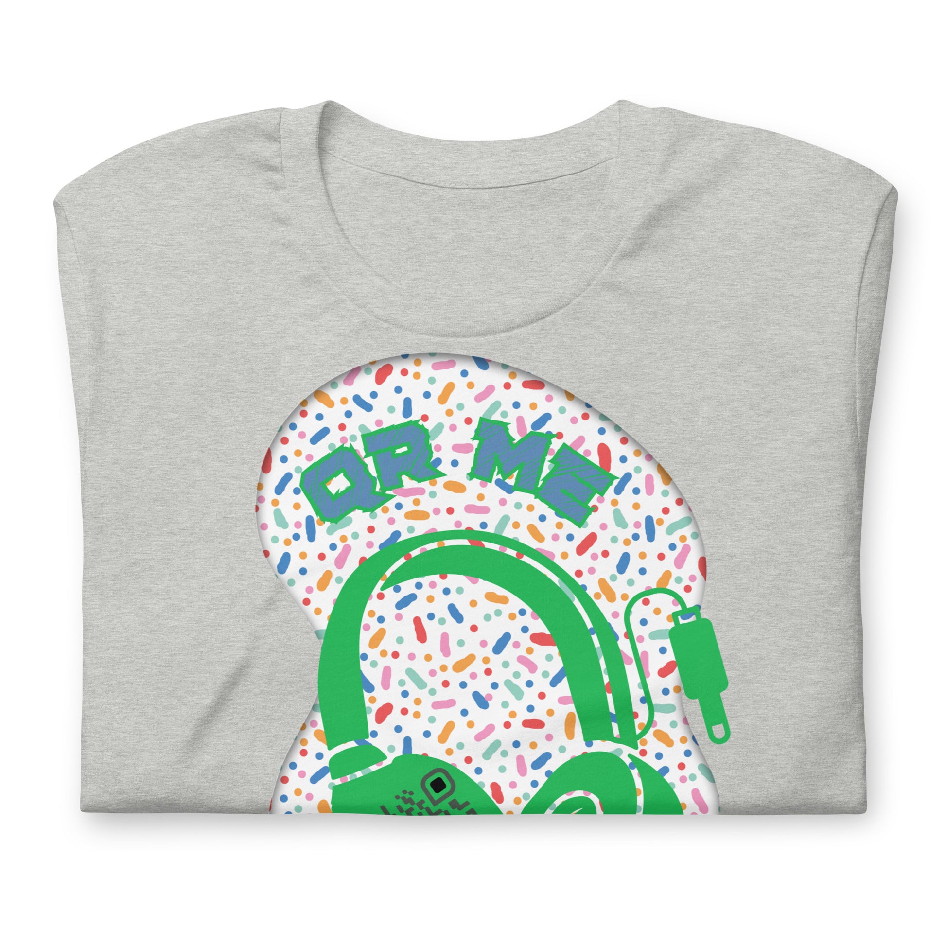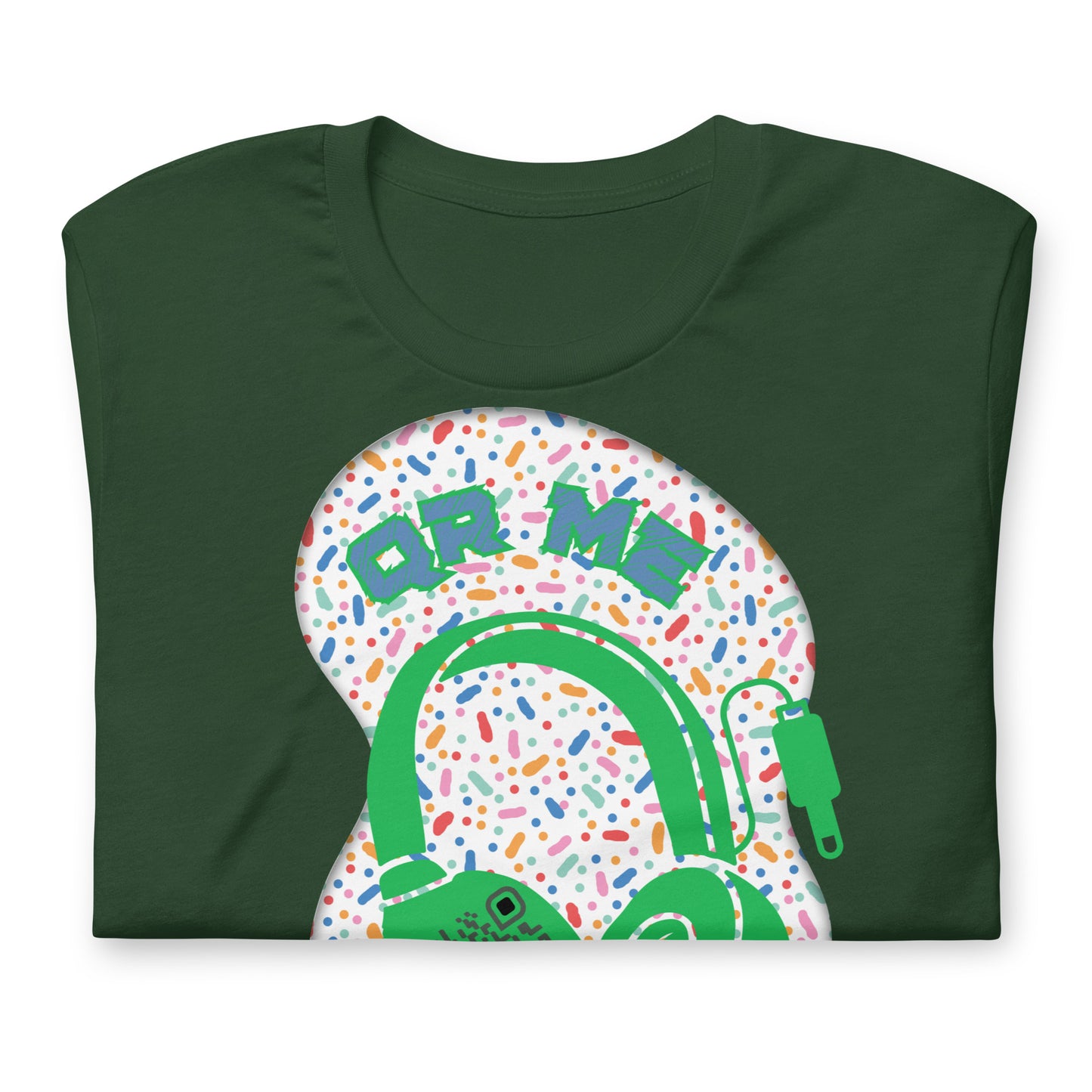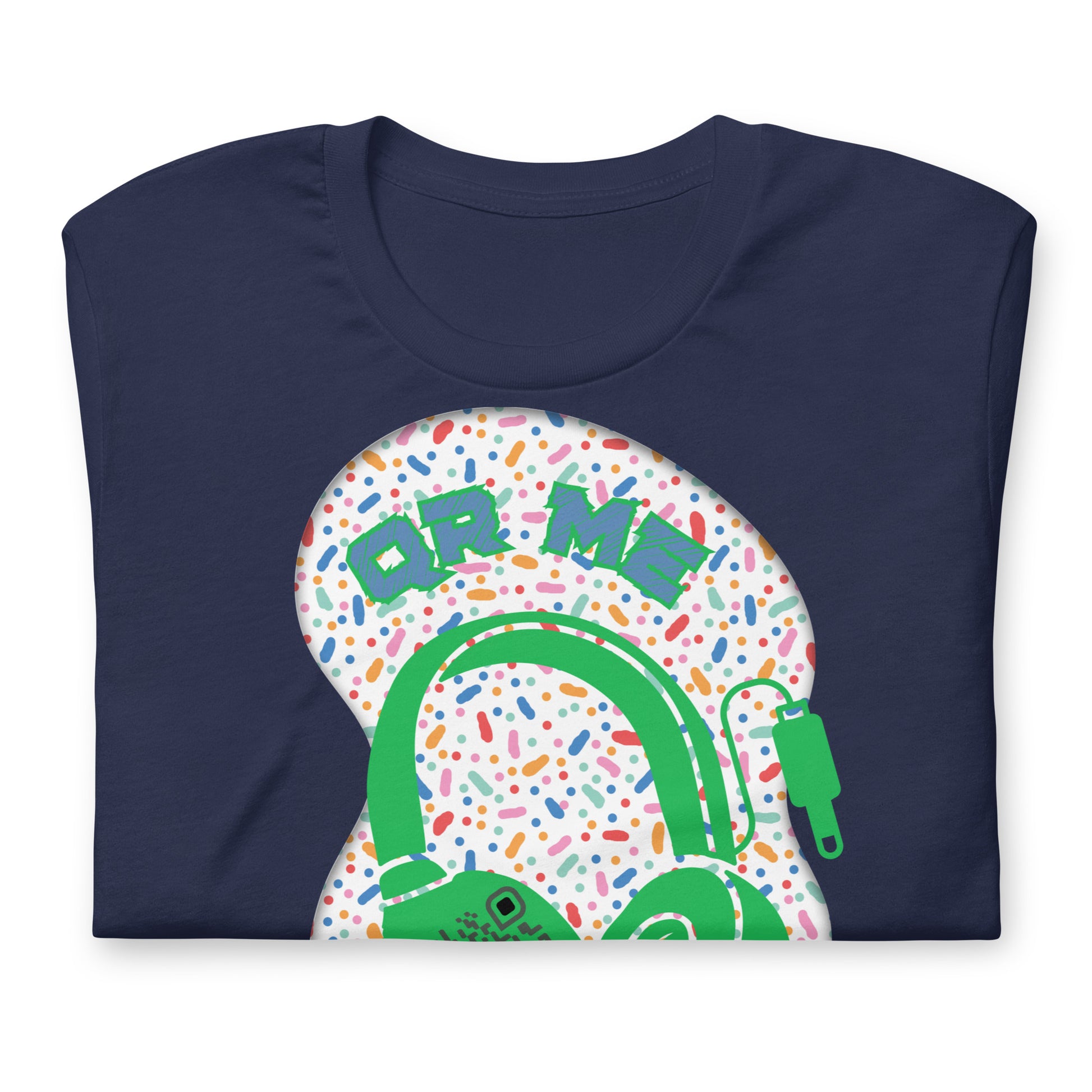 Featuring a playful, vibrant polka dot background, this t-shirt lets you share your music effortlessly by scanning the personalized QR code.