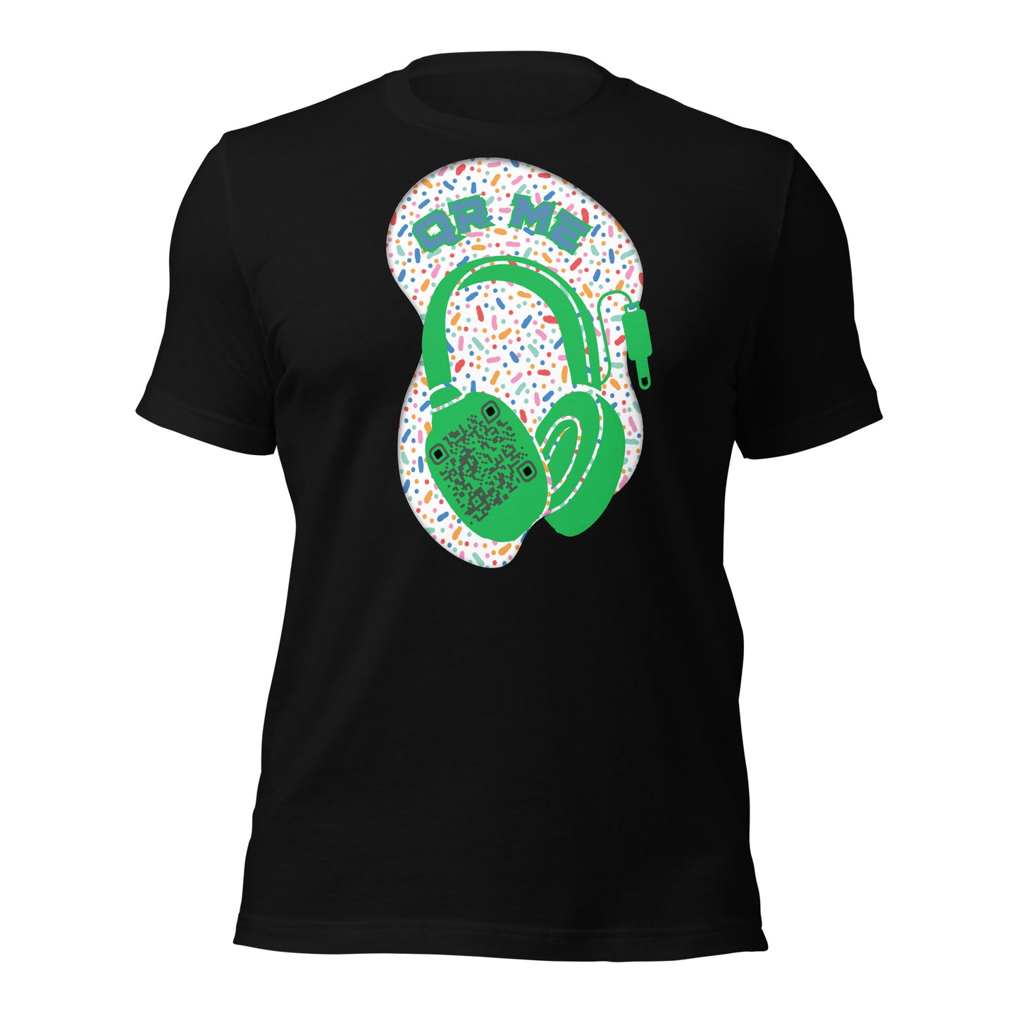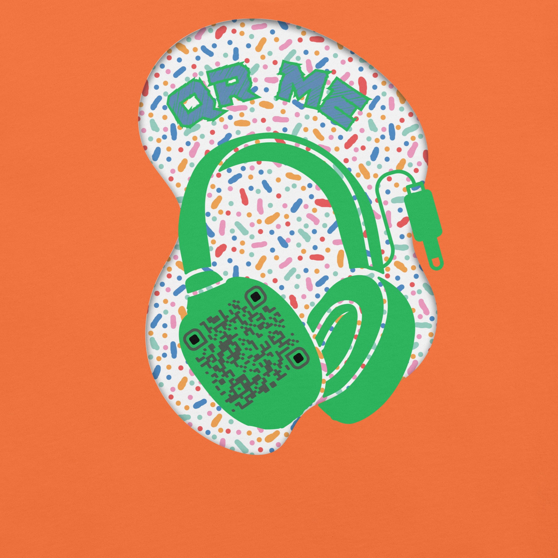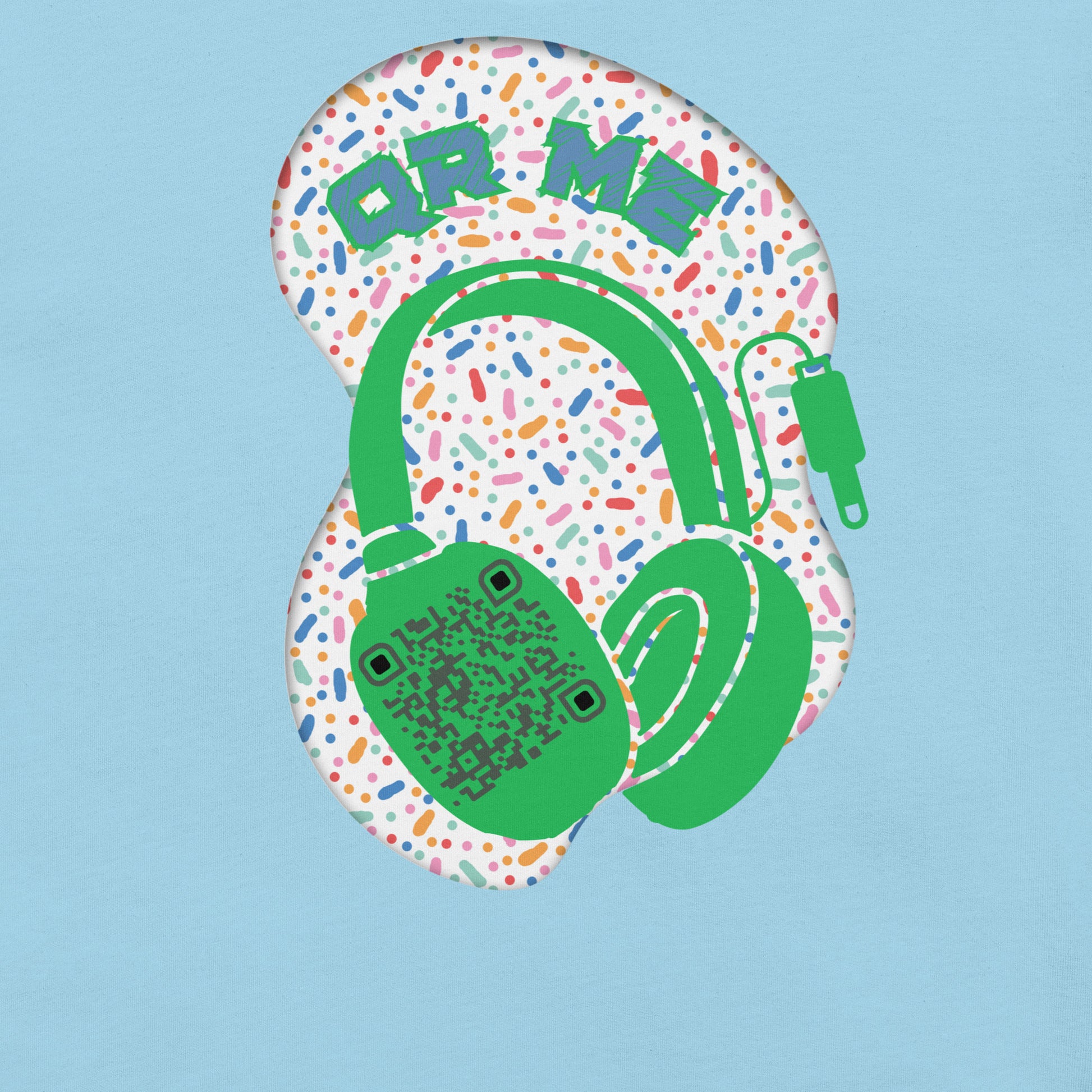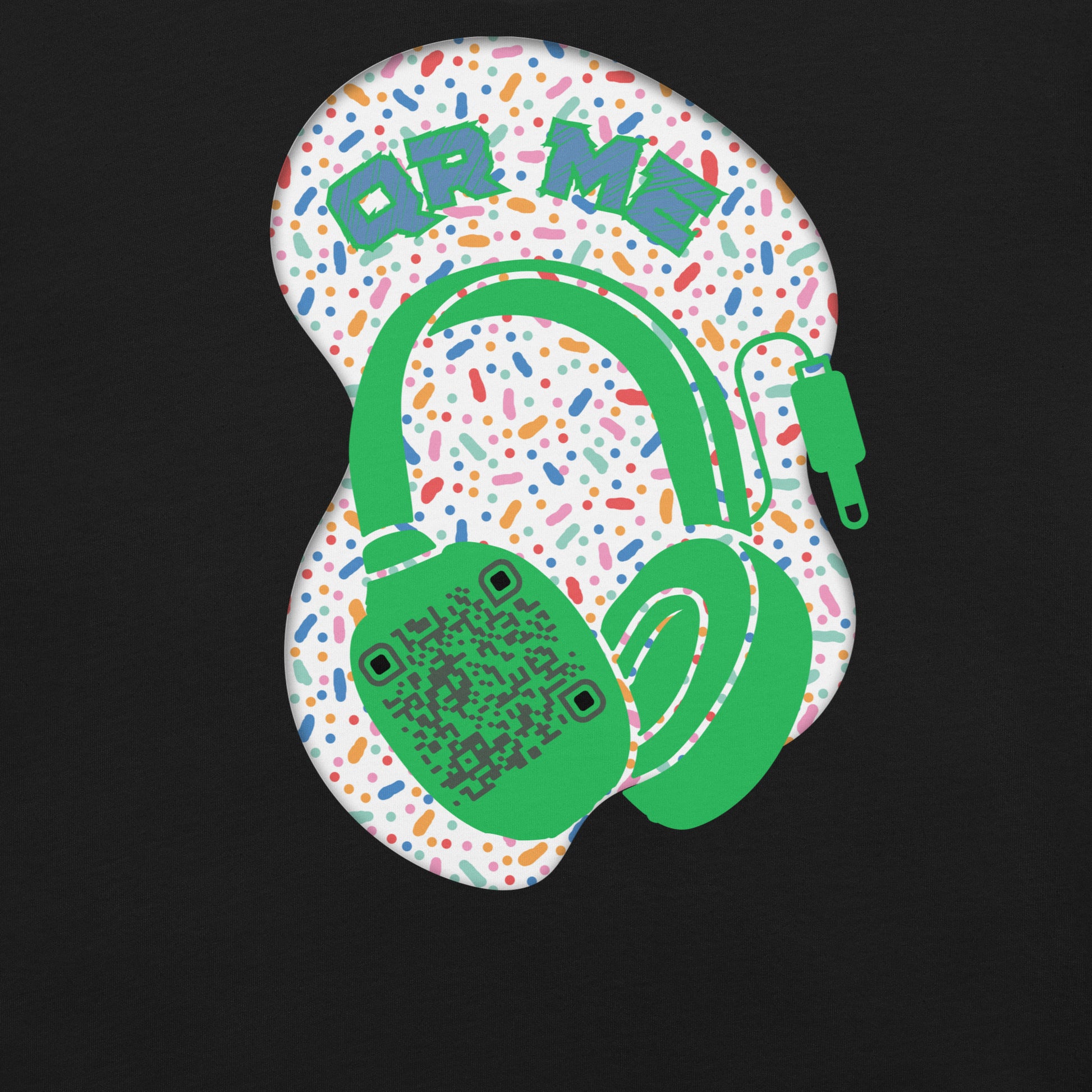 Featuring a playful, vibrant polka dot background, this t-shirt lets you share your music effortlessly by scanning the personalized QR code.