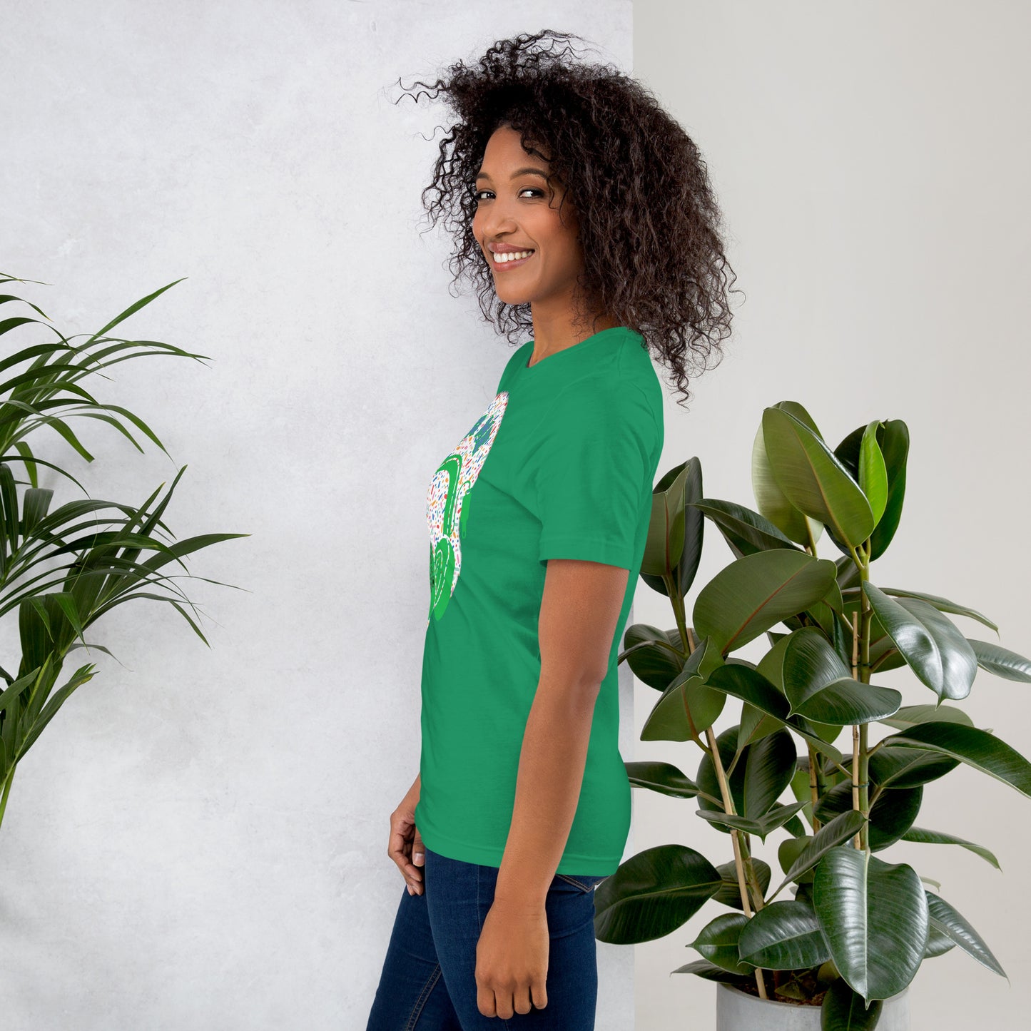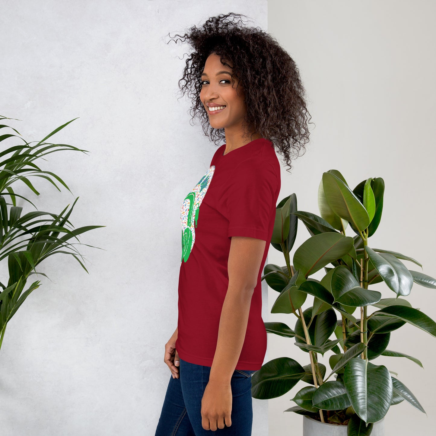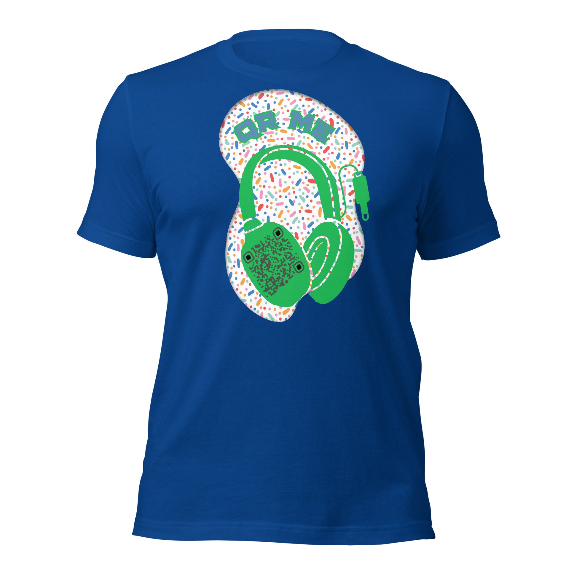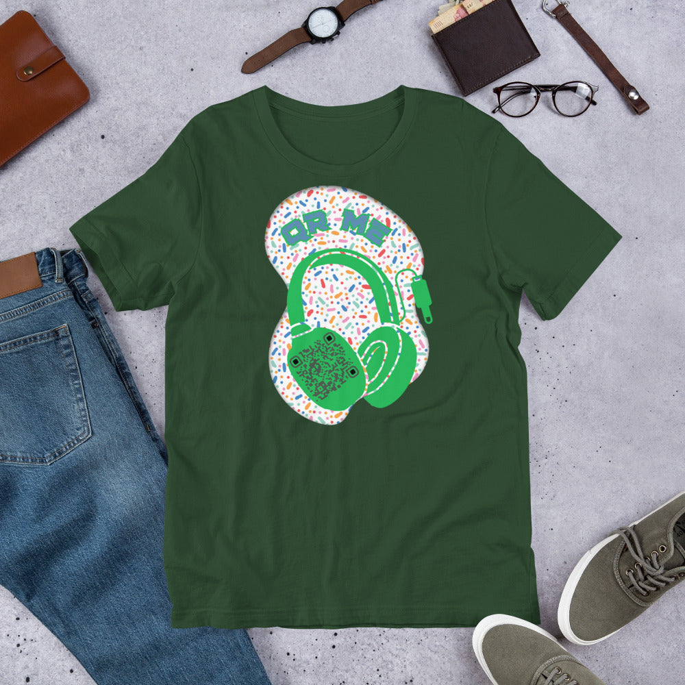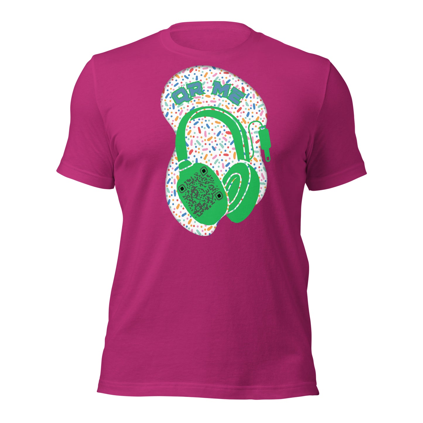 Featuring a playful, vibrant polka dot background, this t-shirt lets you share your music effortlessly by scanning the personalized QR code.