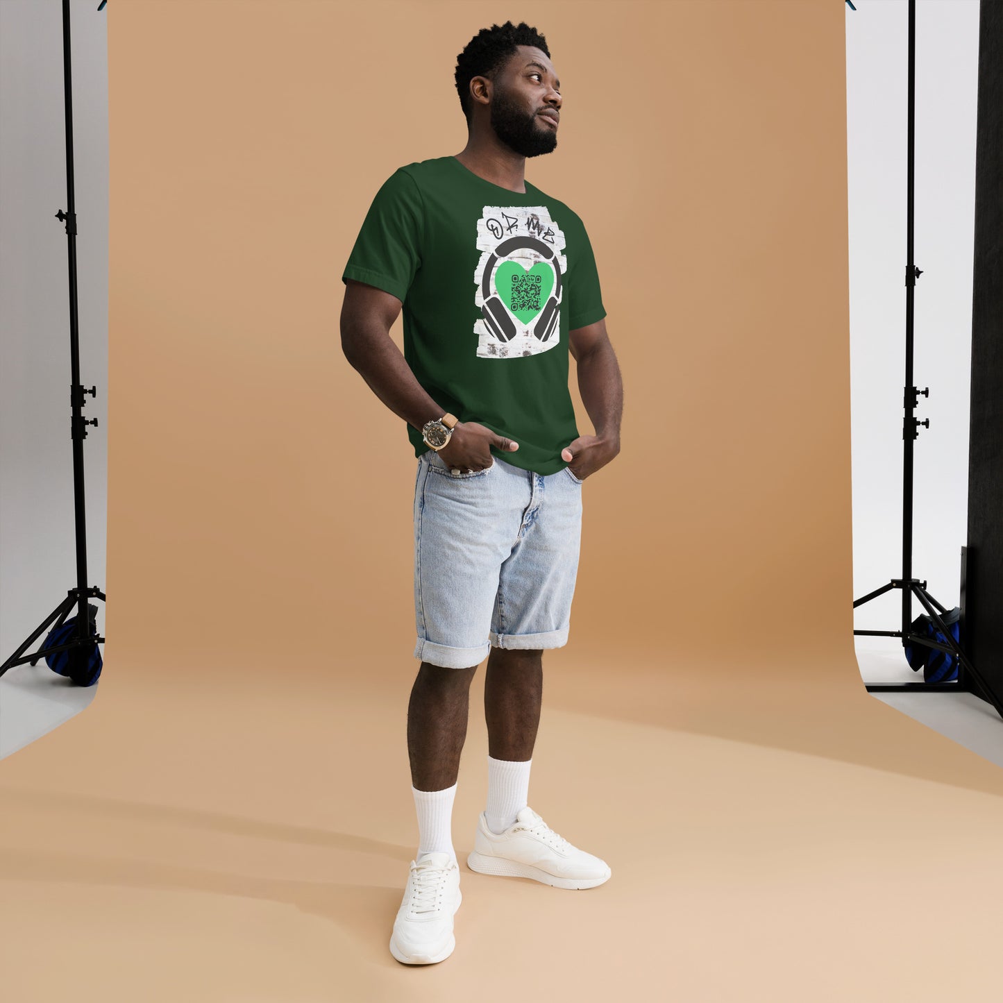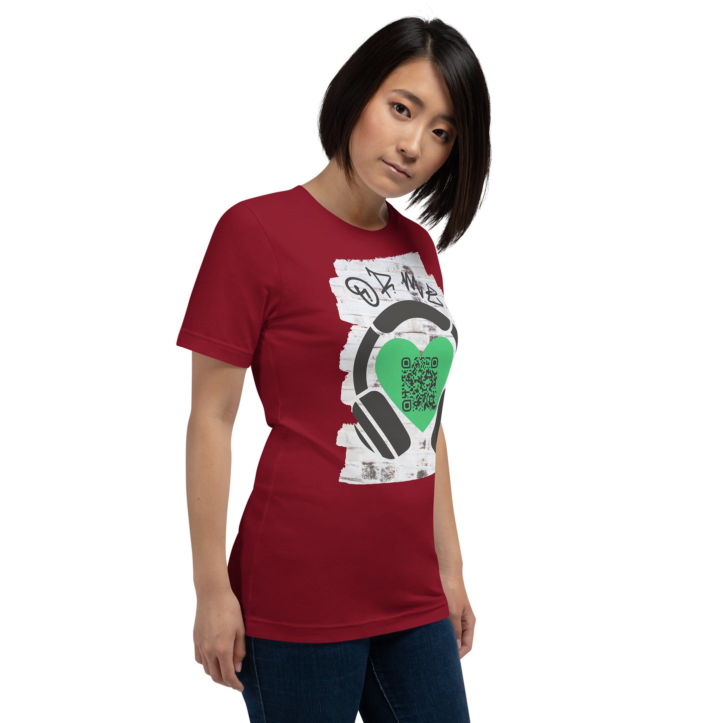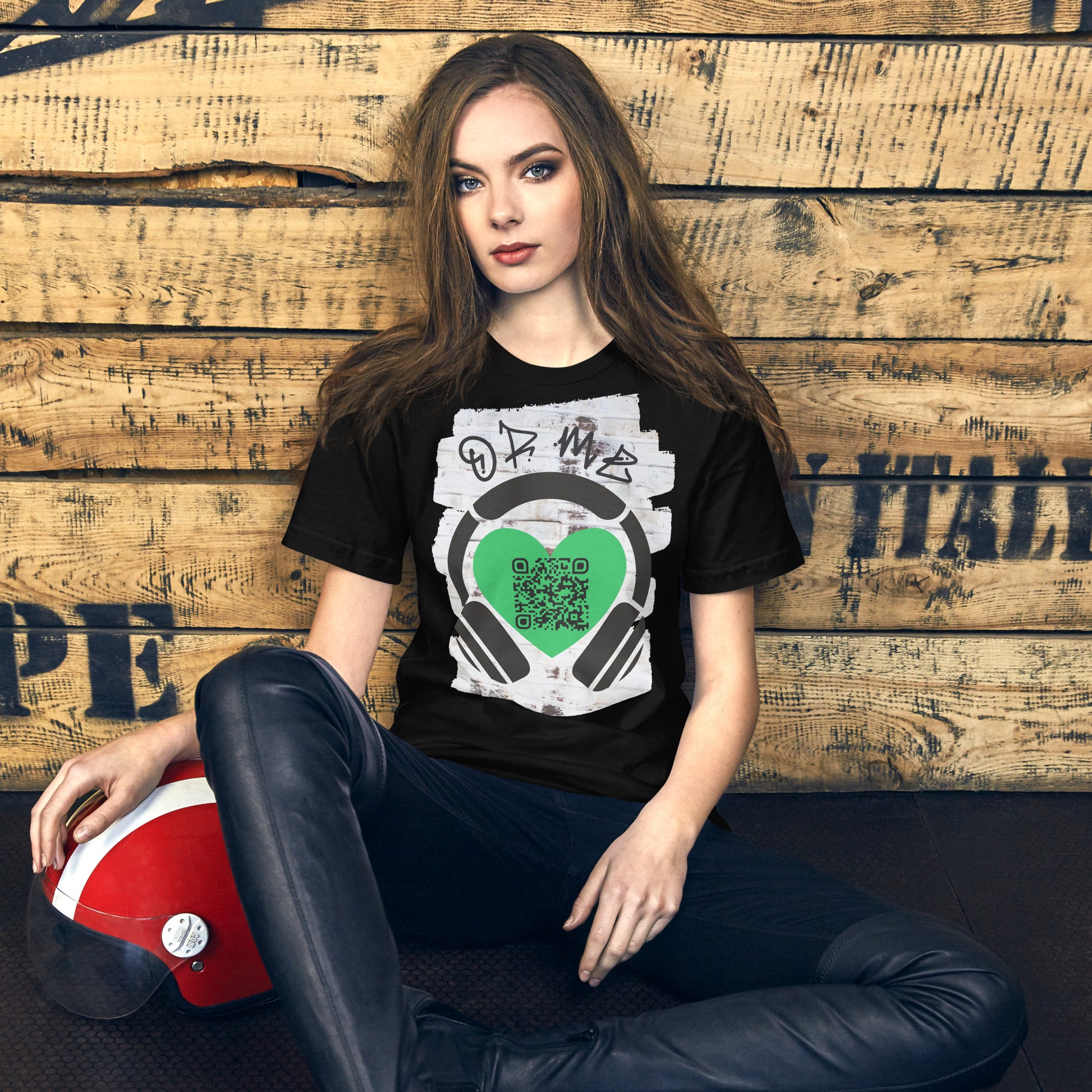 This stylish tee features a scannable QR code linking to your playlist or favorite song.