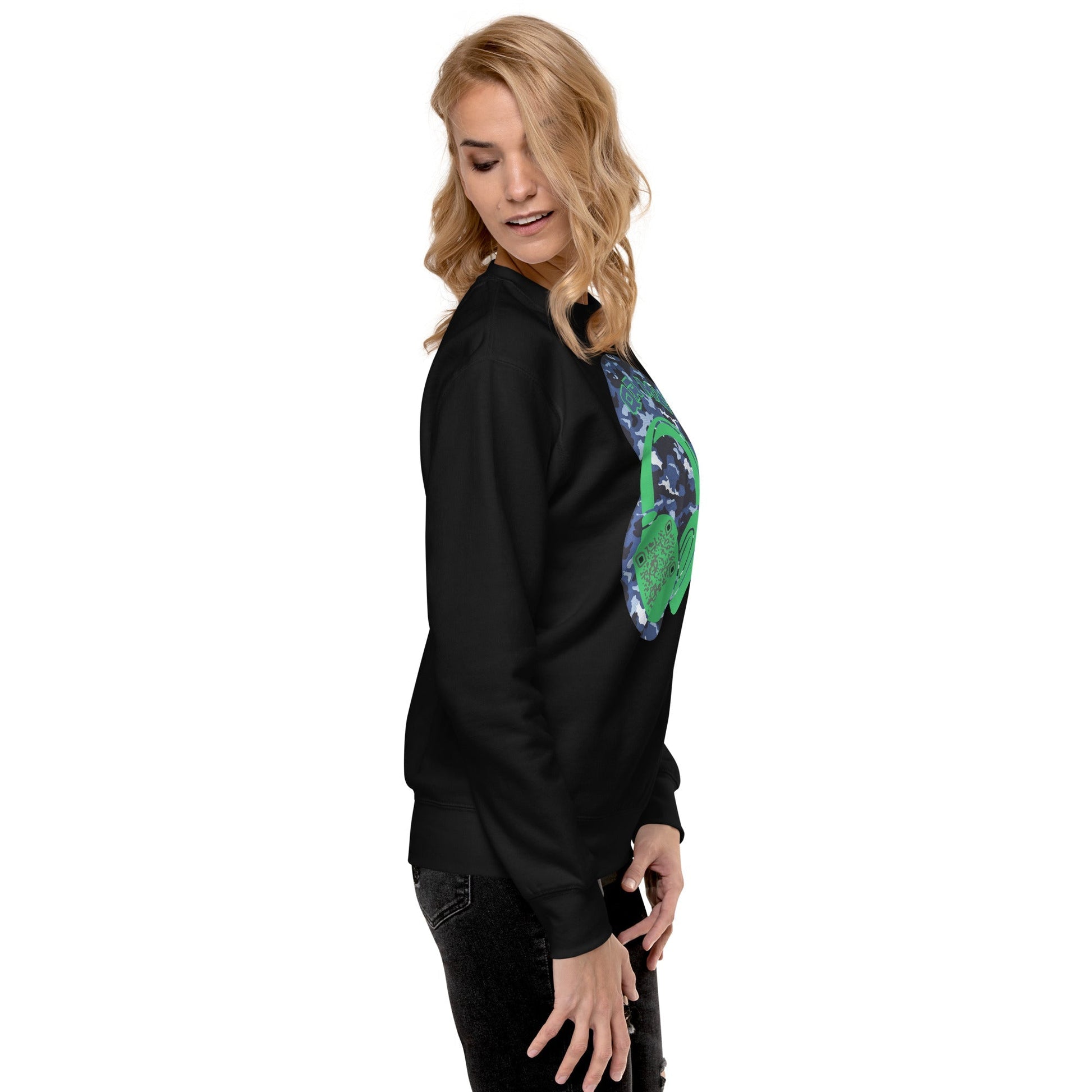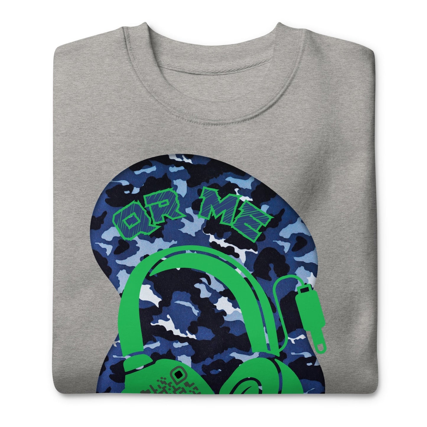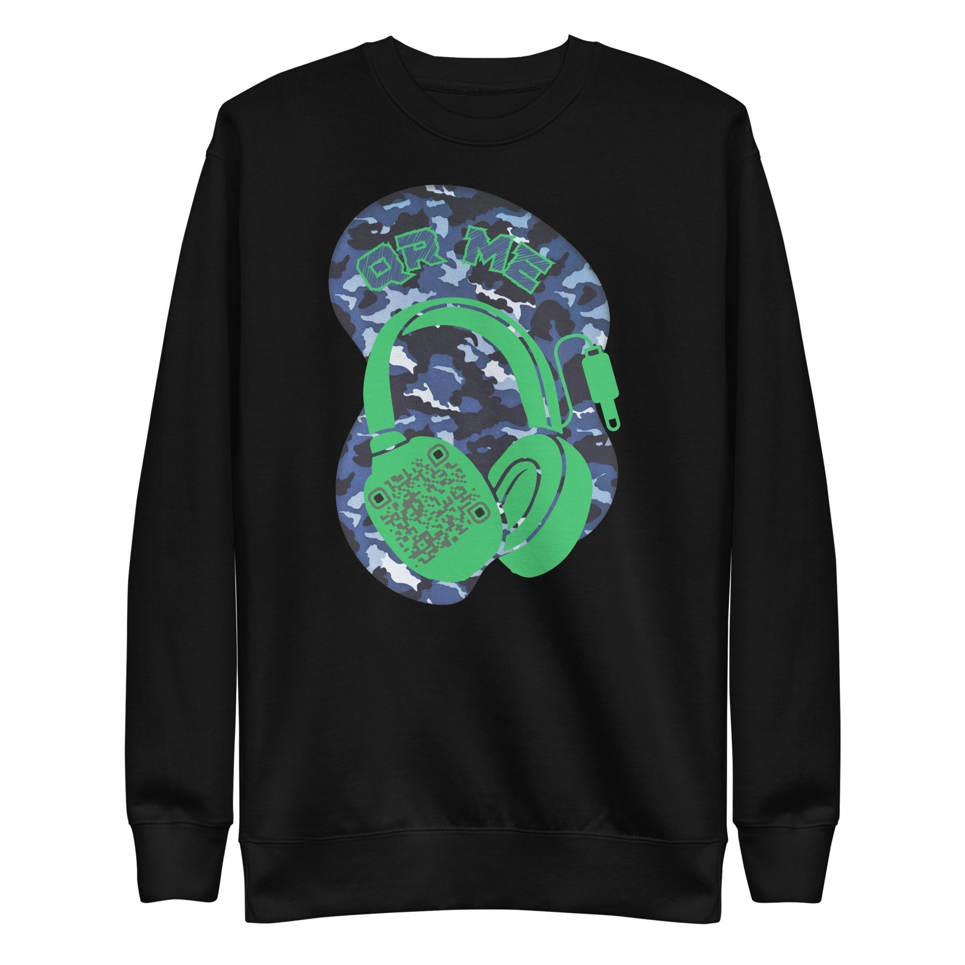 Merge style and sound with our Personalized QR Code Sweatshirt in a cool blue camouflage design!