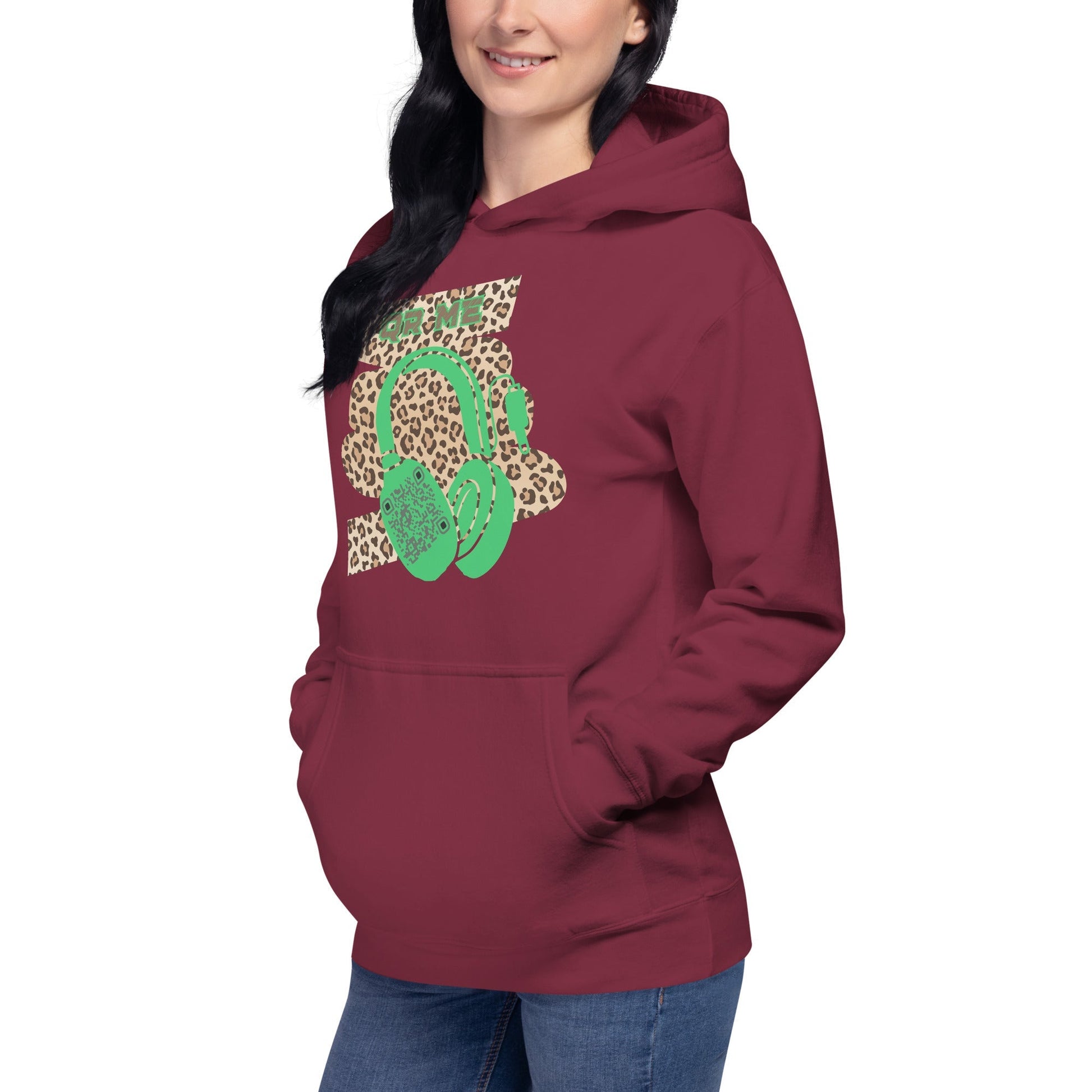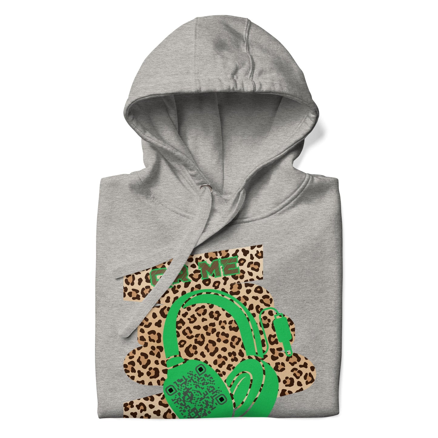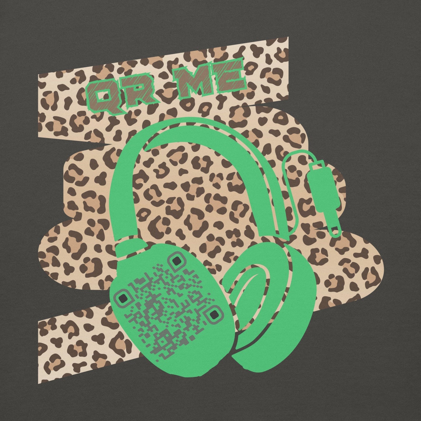 Perfect for music-sharing fans, this hoodie combines a fierce leopard print with your own QR code, letting you share your playlist or tracks wherever you go.