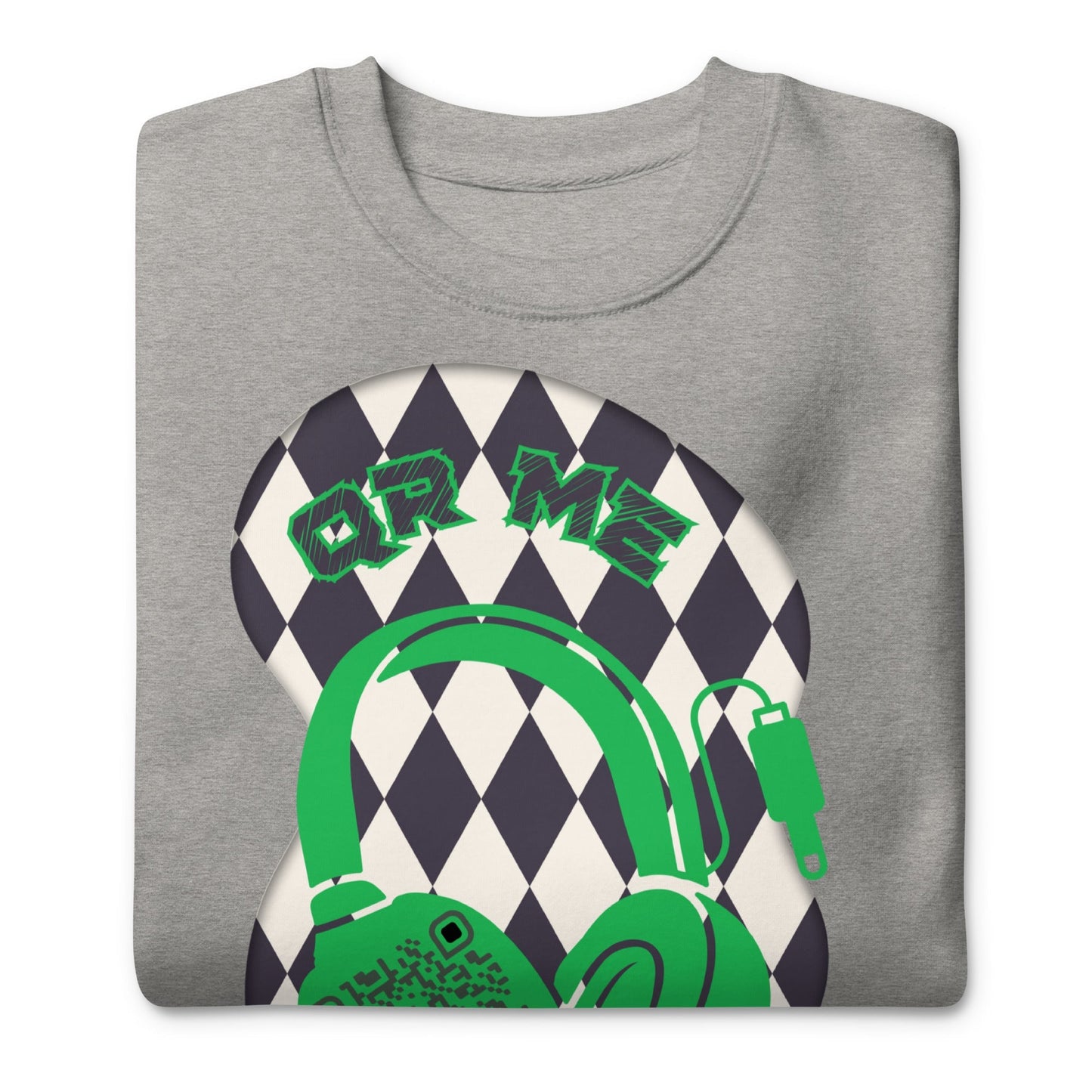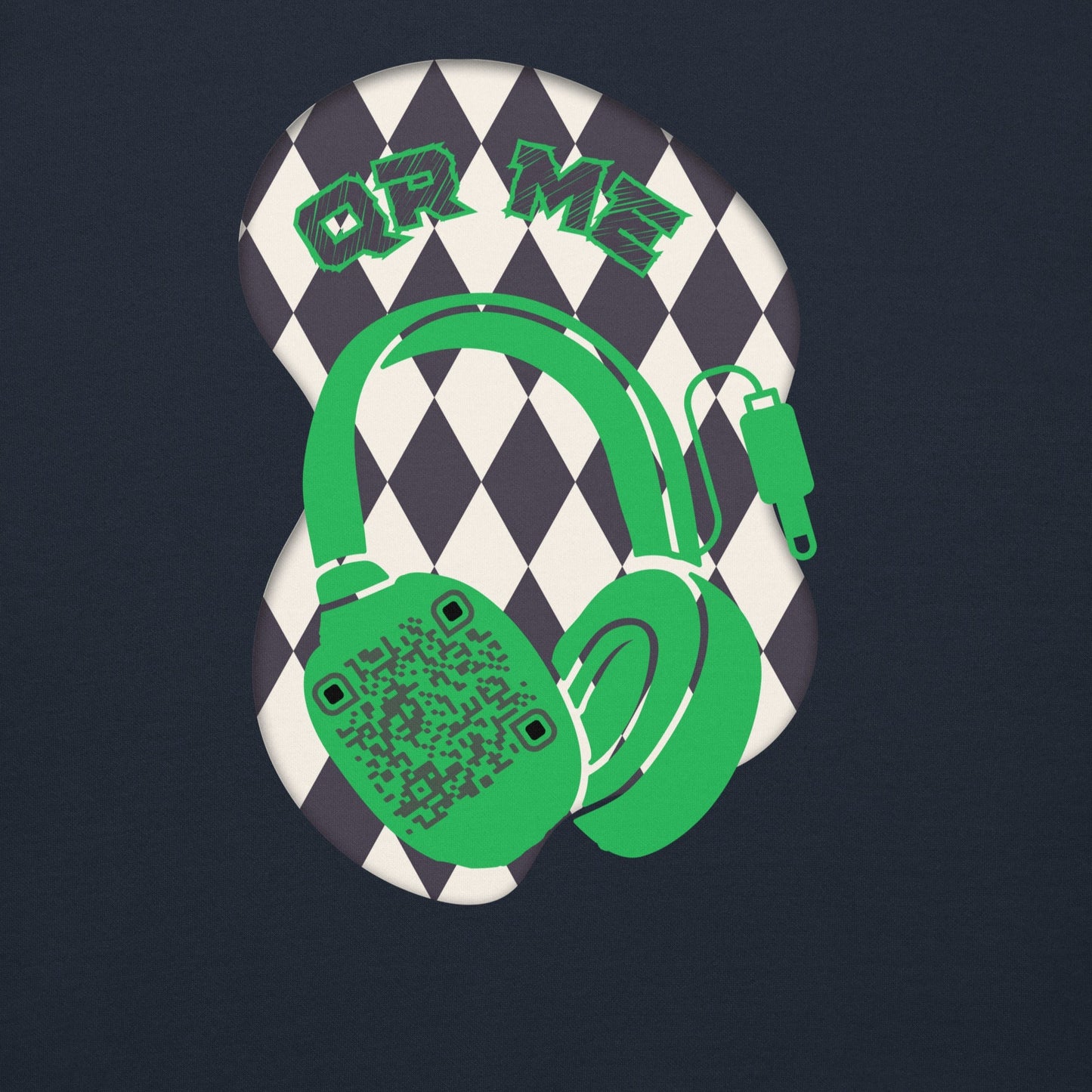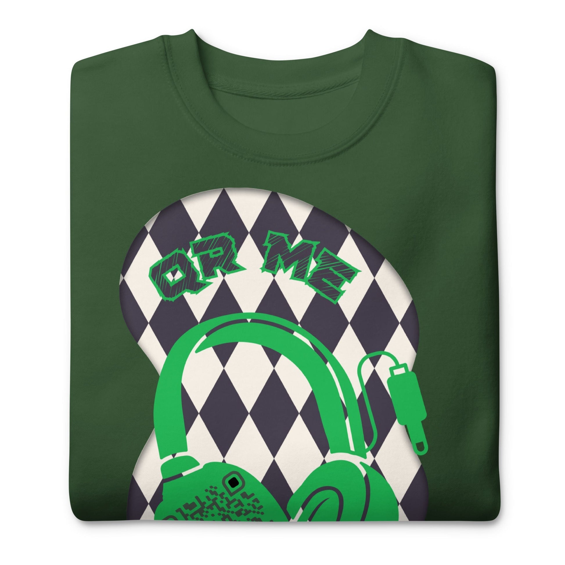 Get ready to rock your look with our Personalized QR Code Sweatshirt featuring a funky harlequin print, made for music-sharing fans! 🎶