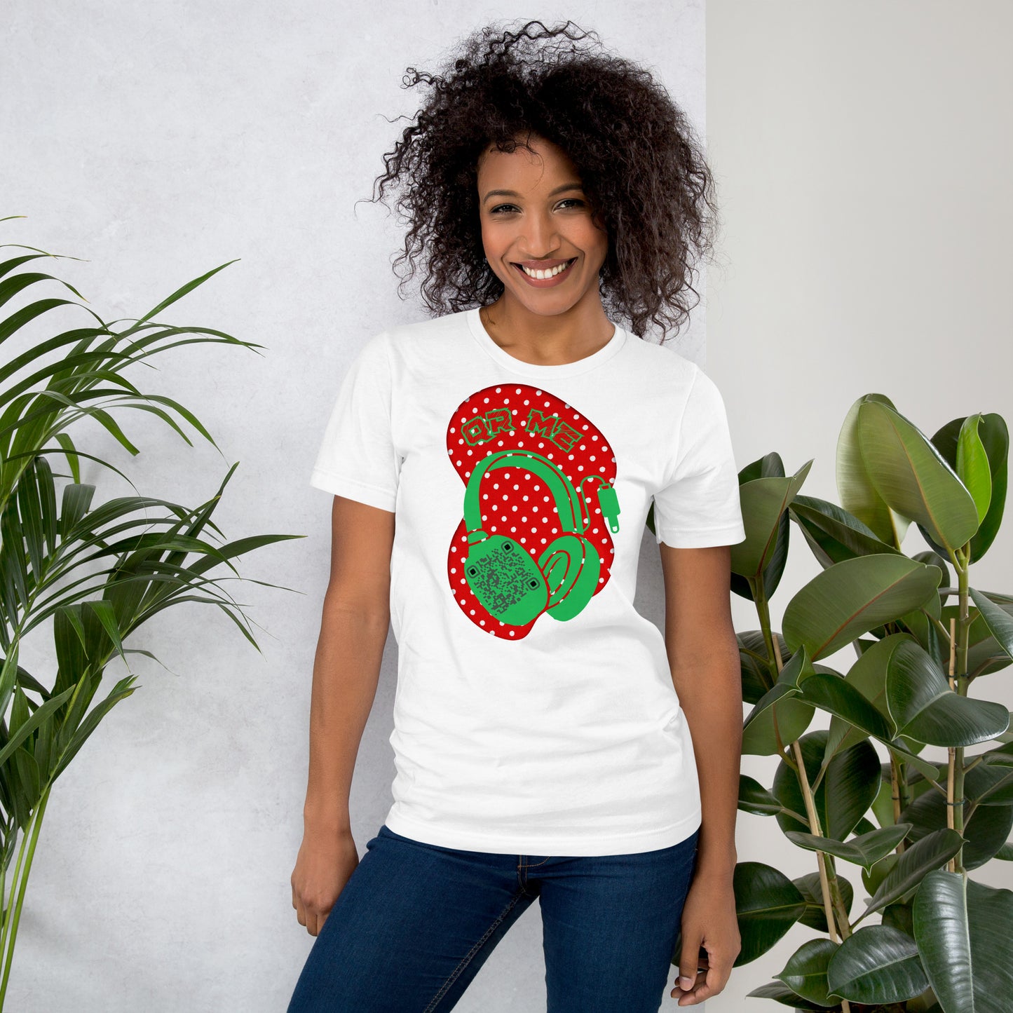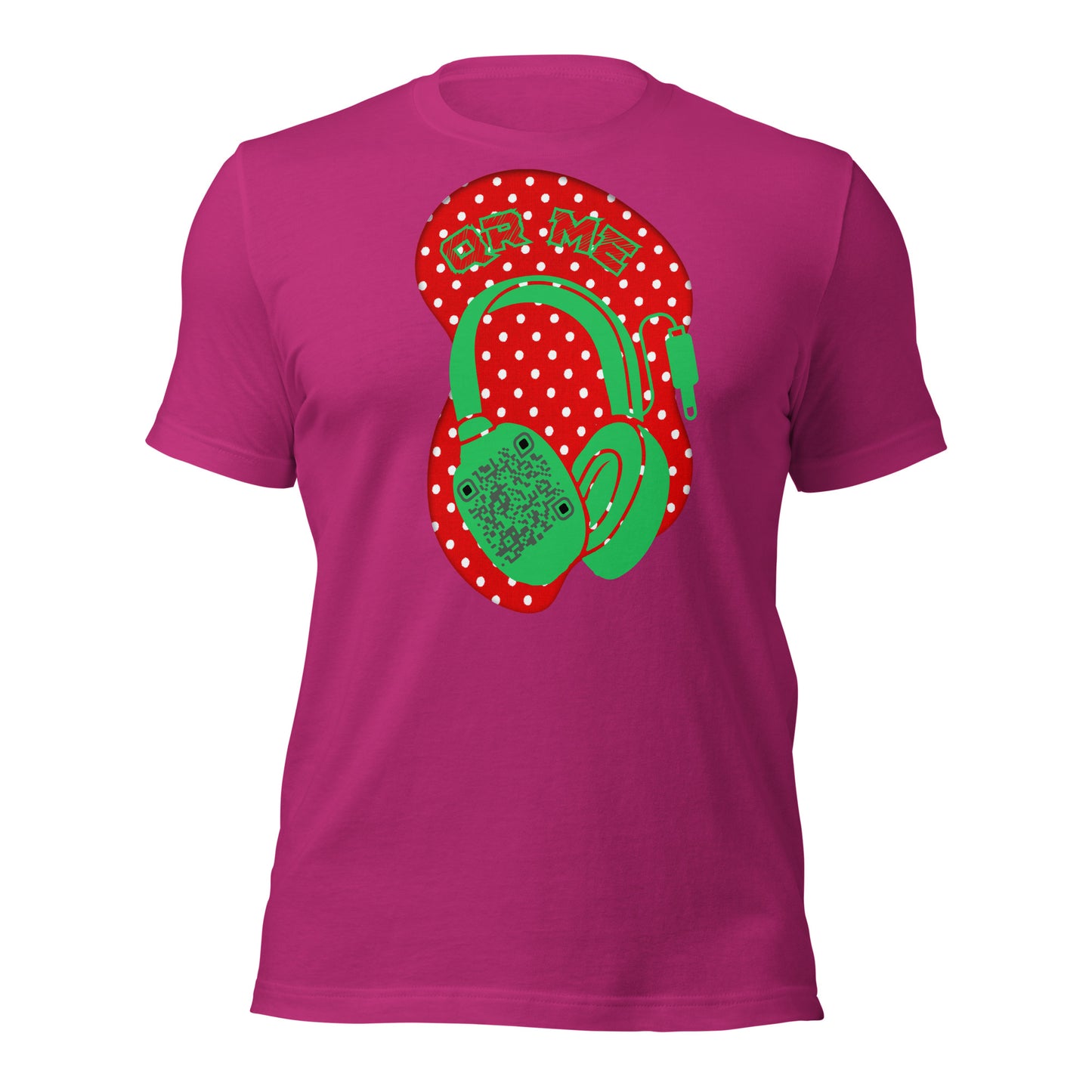 Featuring a fun polka dot background, this t-shirt lets you share your favorite music by simply scanning the QR code.