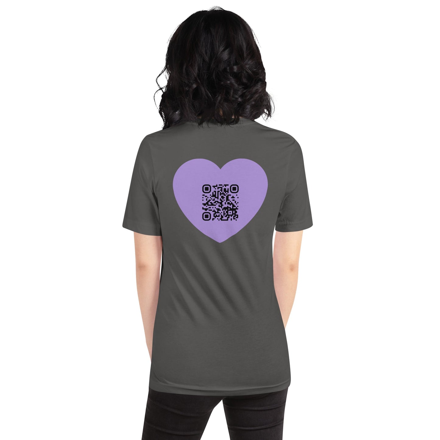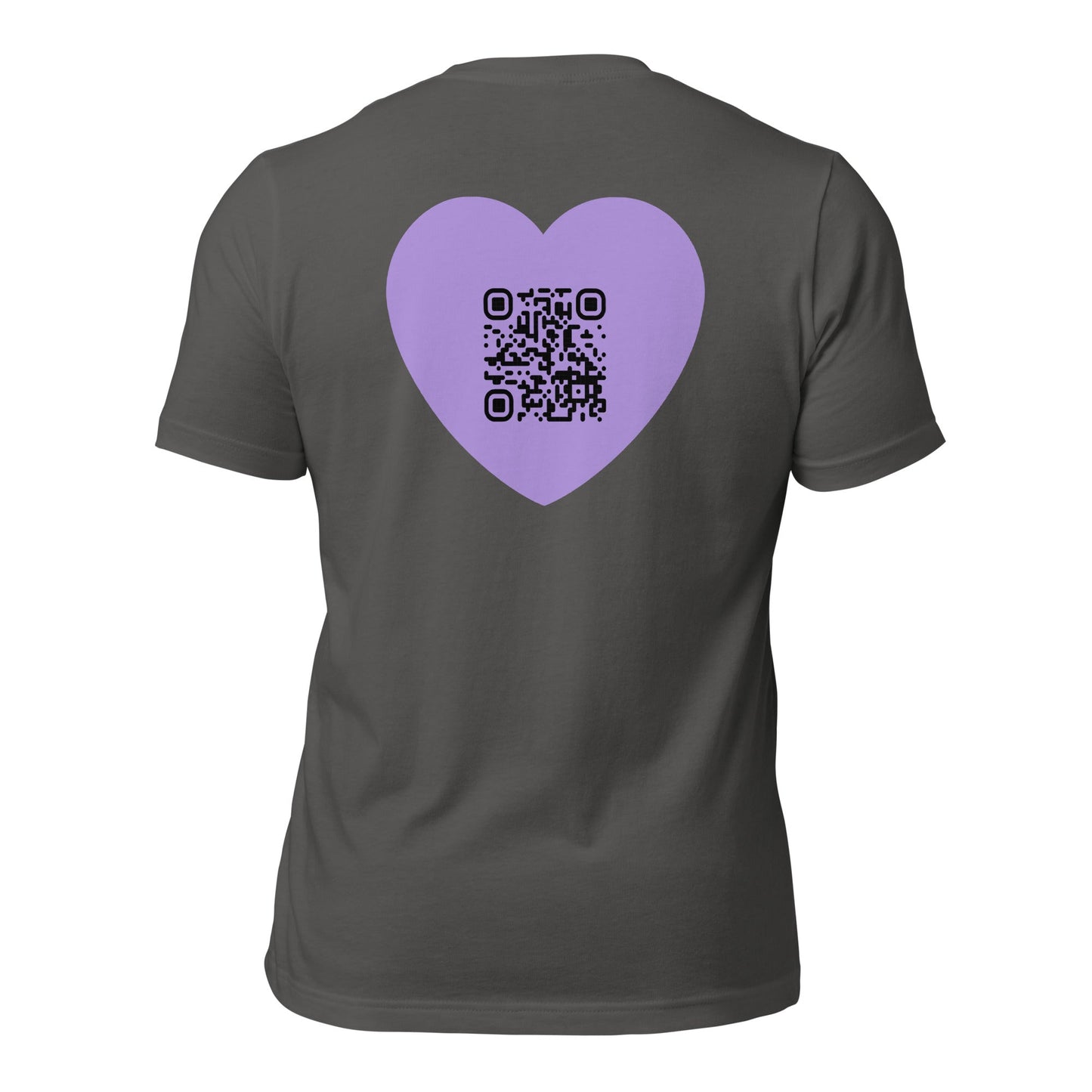 Take your online image to new heights with our Purple Heart Emoji Personalized QR Code Unisex T-Shirt!