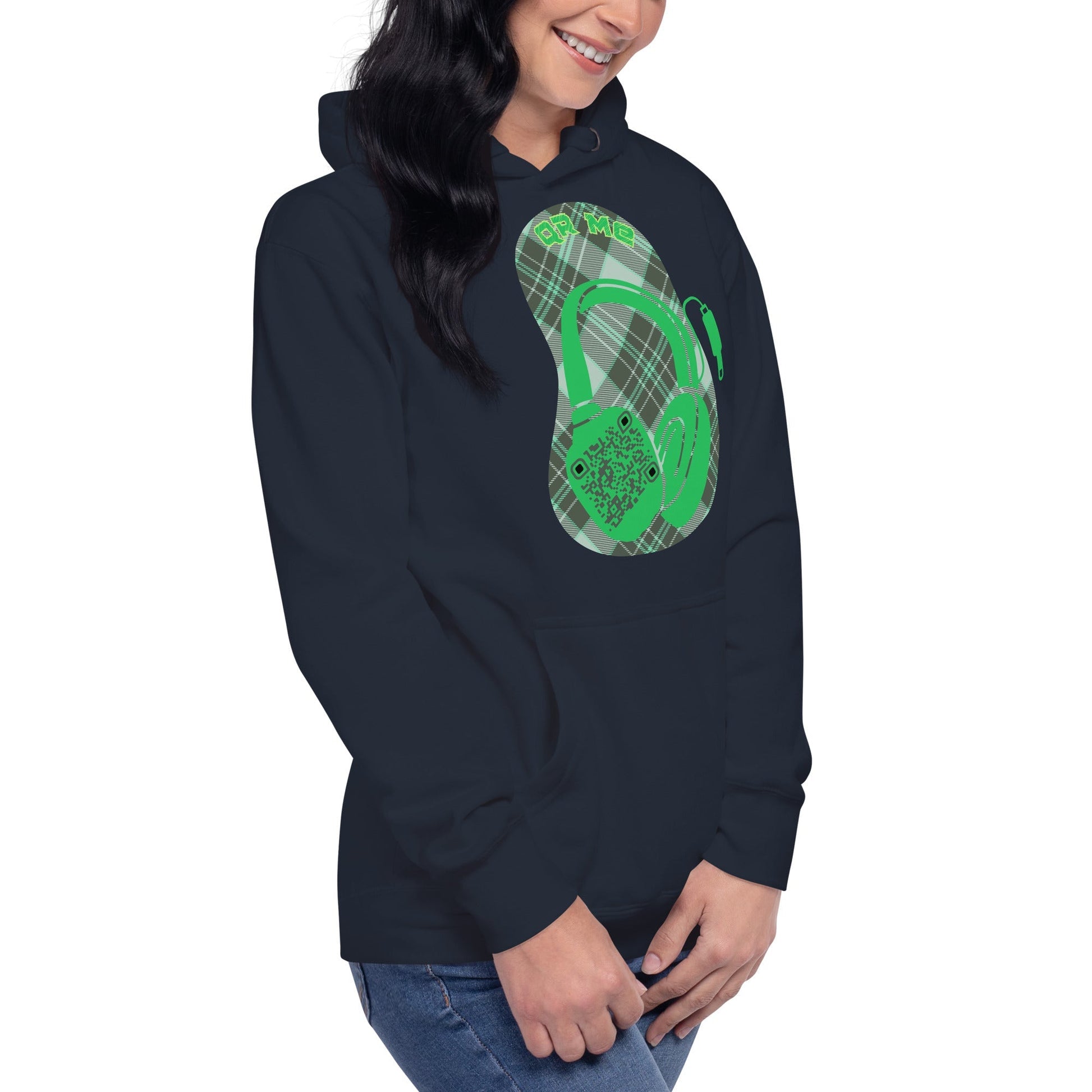 Scan the custom QR code to share your favorite tracks or playlists with anyone instantly. This hoodie is perfect for music lovers who want to mix tech with cozy fashion.