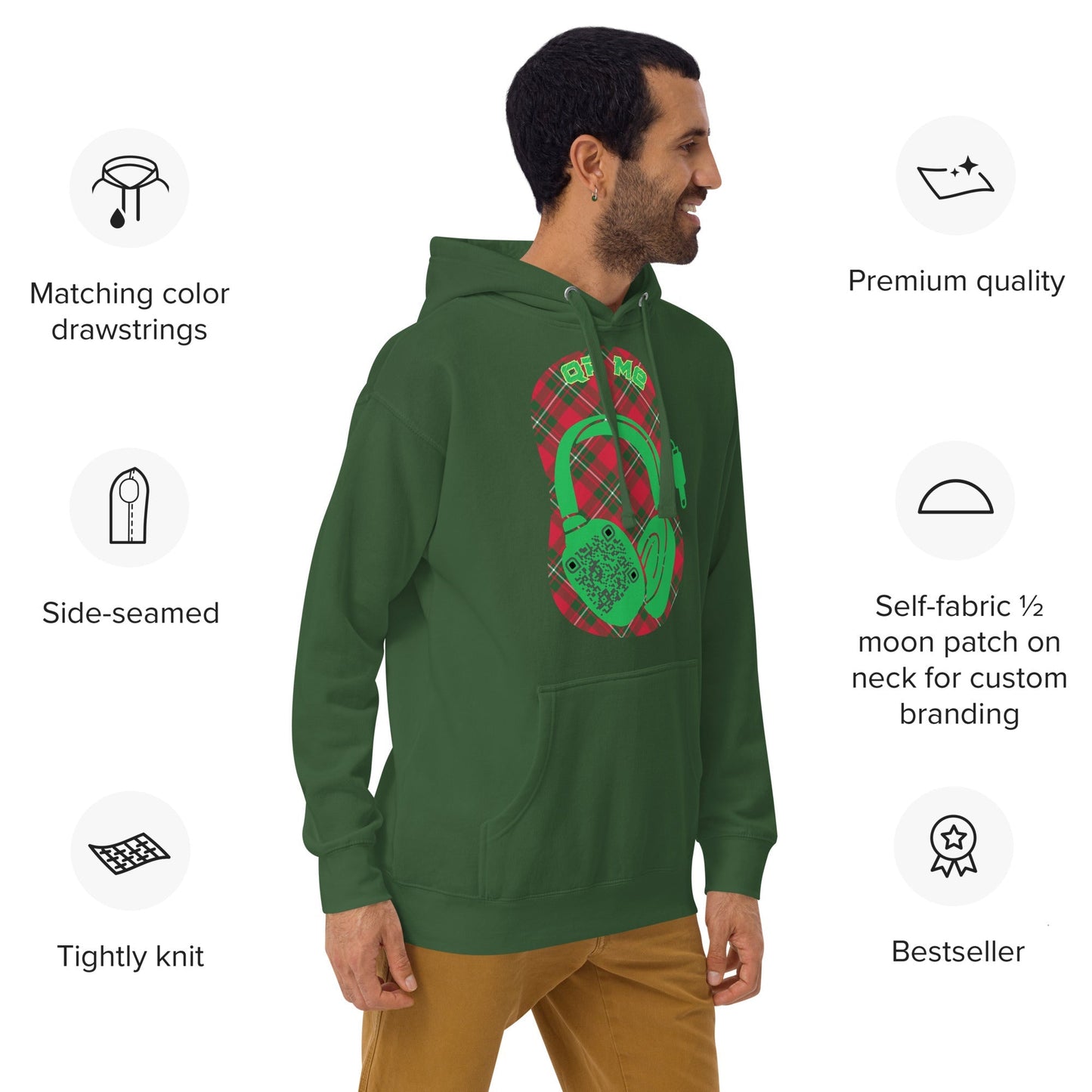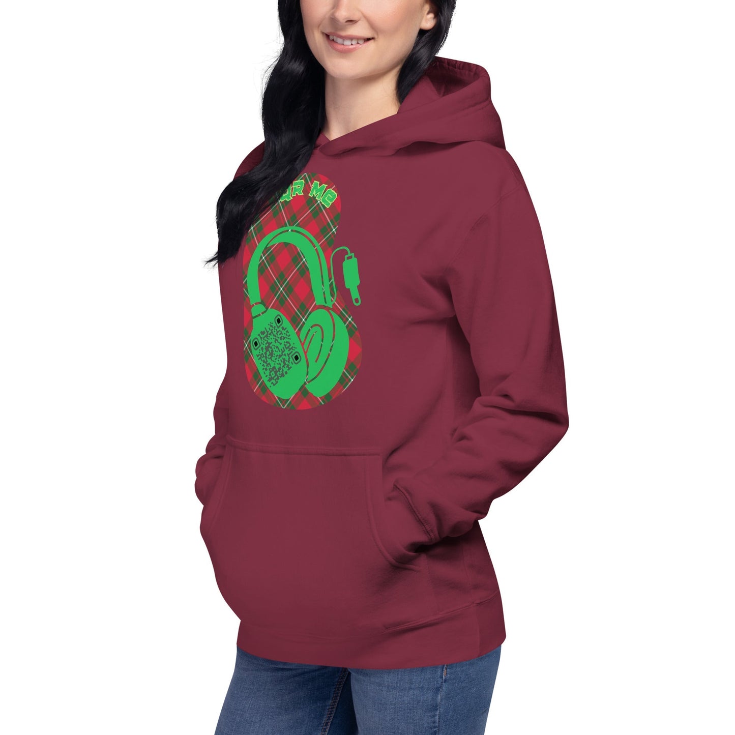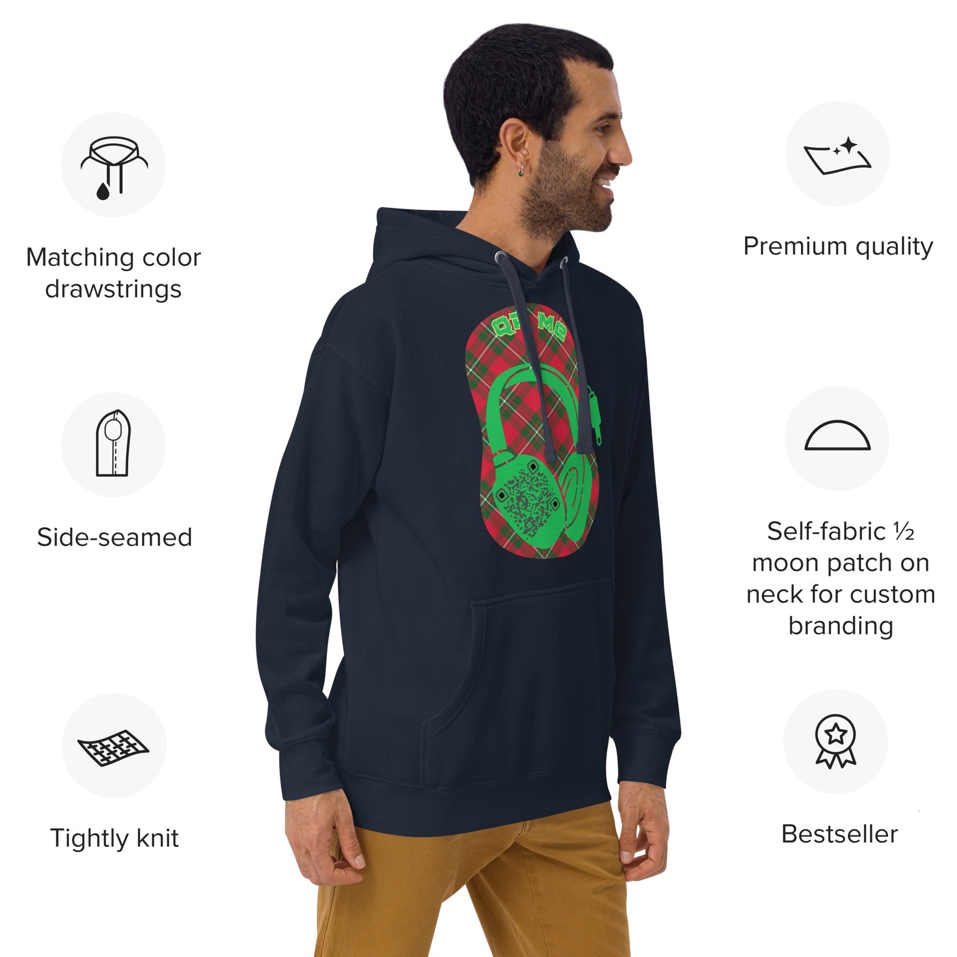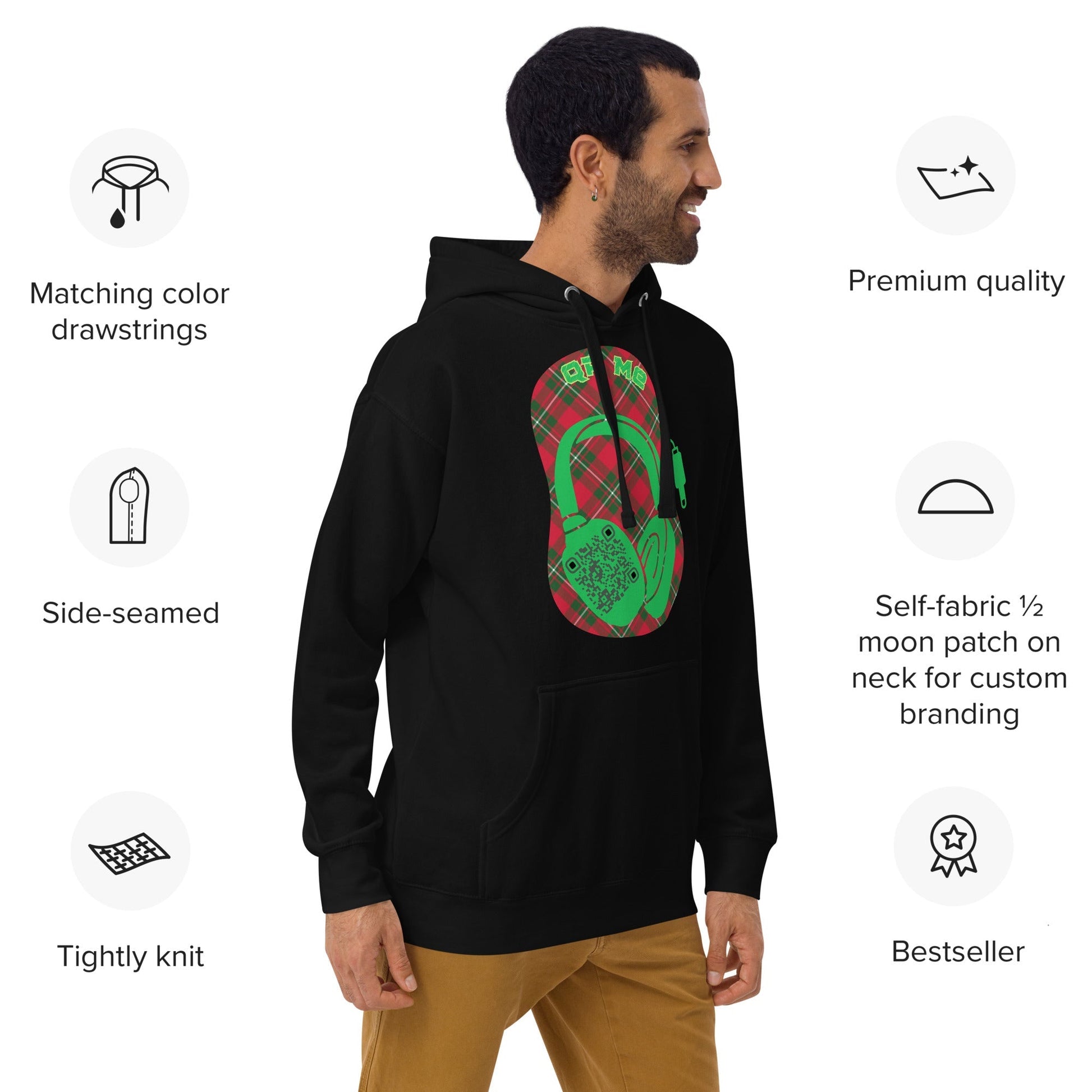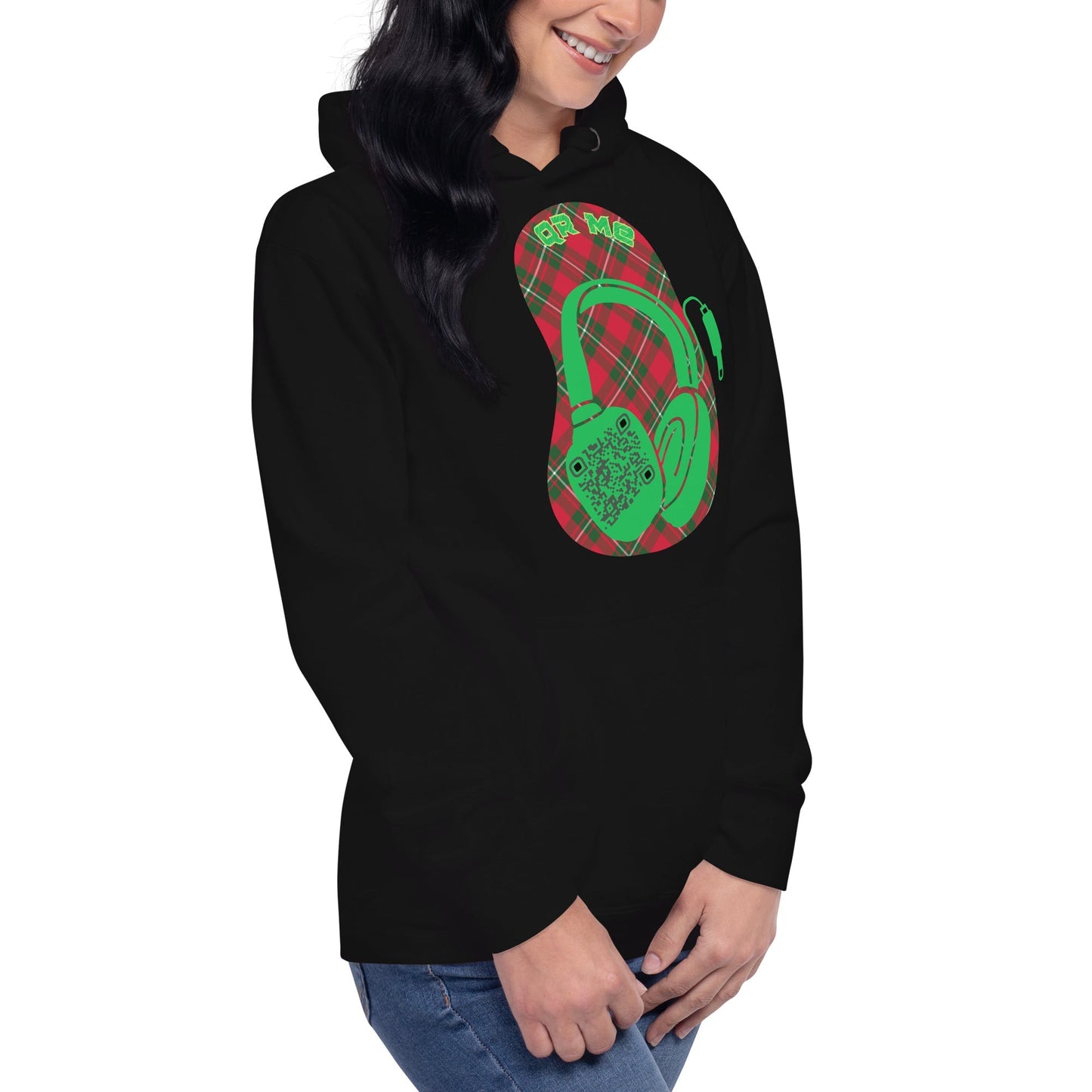 Stay cozy and connected with our Custom QR Code Hoodie featuring a bold headphone design! 🎶