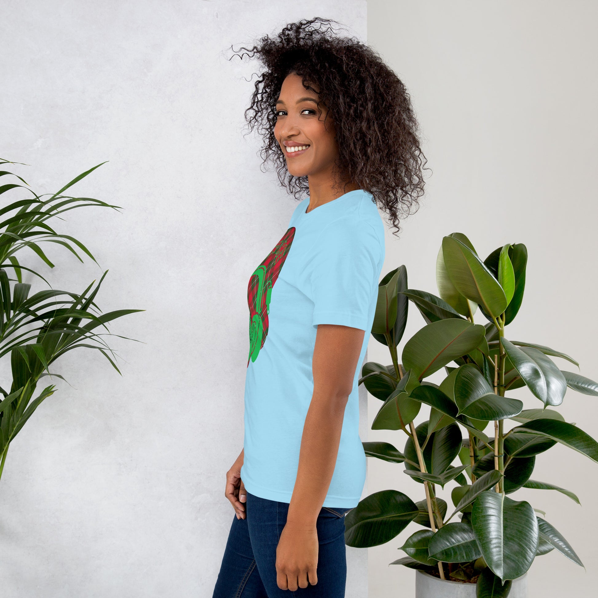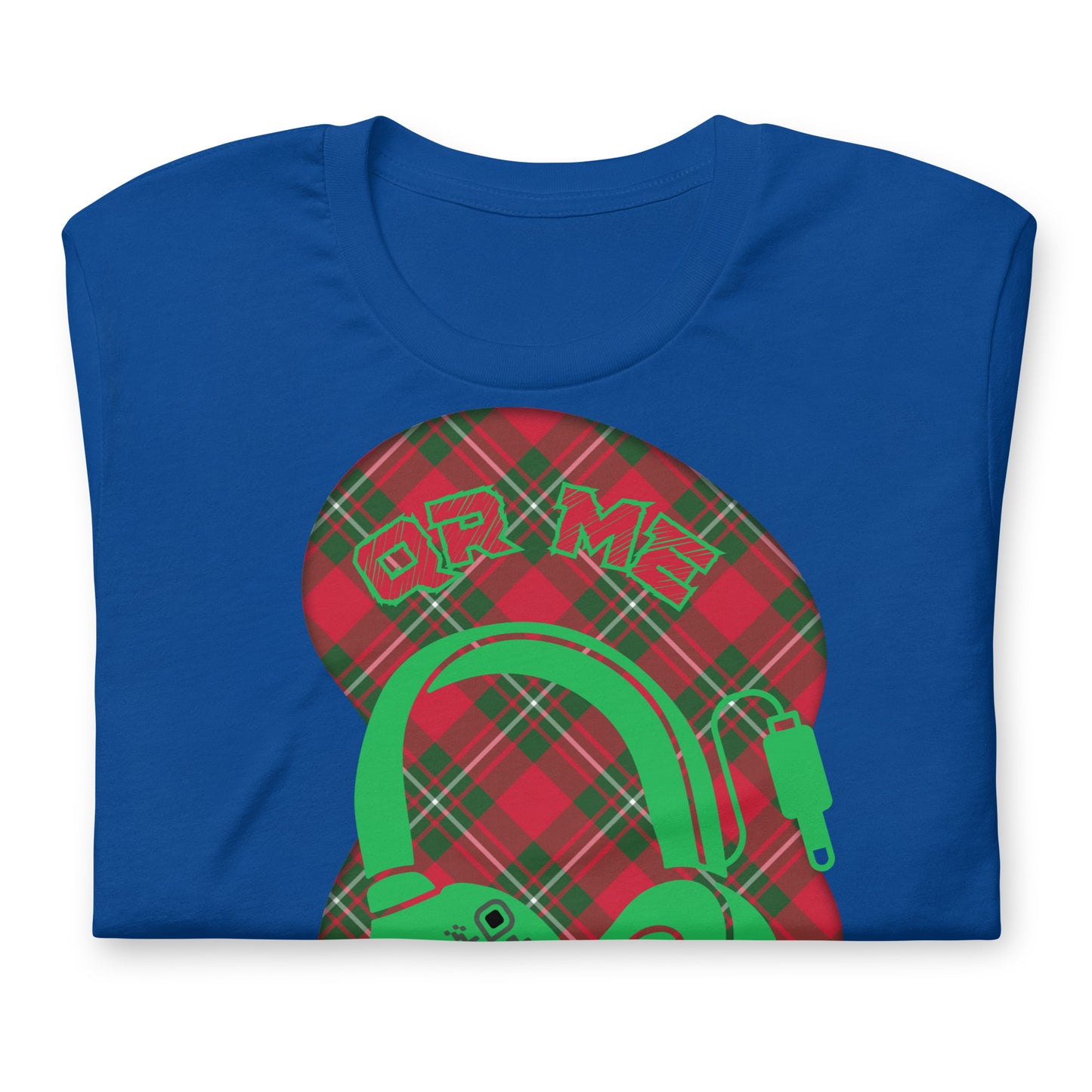 Featuring a timeless tartan background, this t-shirt blends traditional style with cutting-edge music-sharing tech.